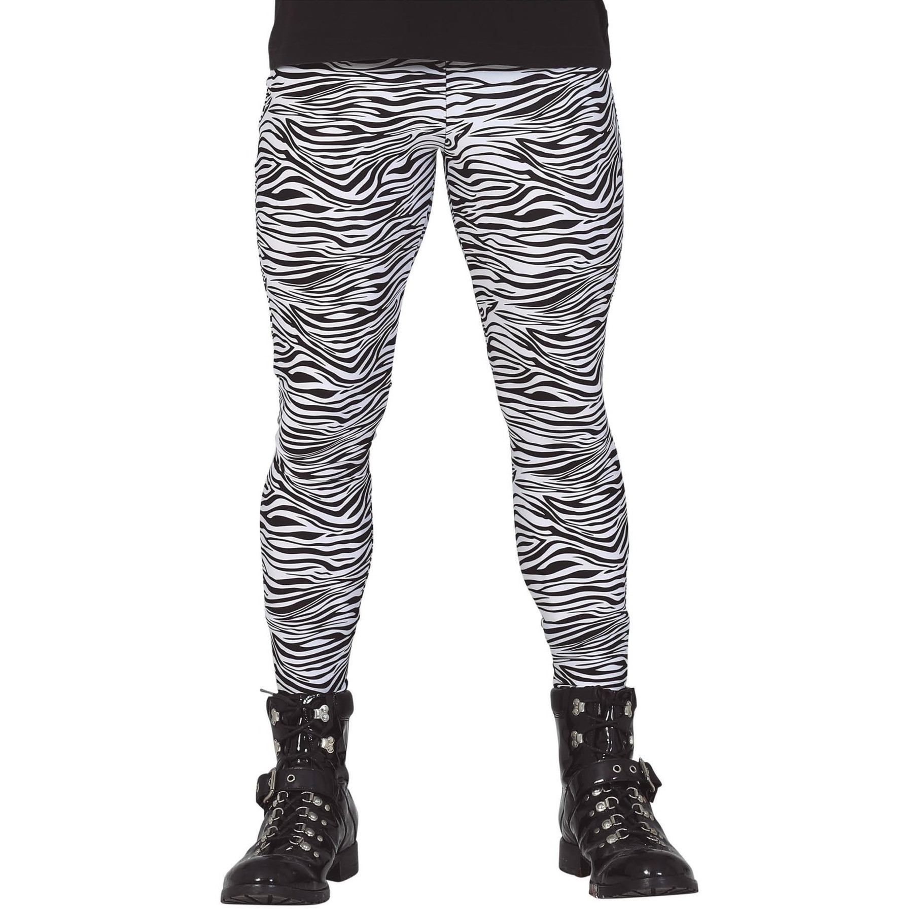 Calças sensacionais com padrão de zebra em branco e preto, perfeitas para surpreender em festas temáticas, despedidas e outras celebrações, assim como para complementar inúmeros disfarces de roqueiro.