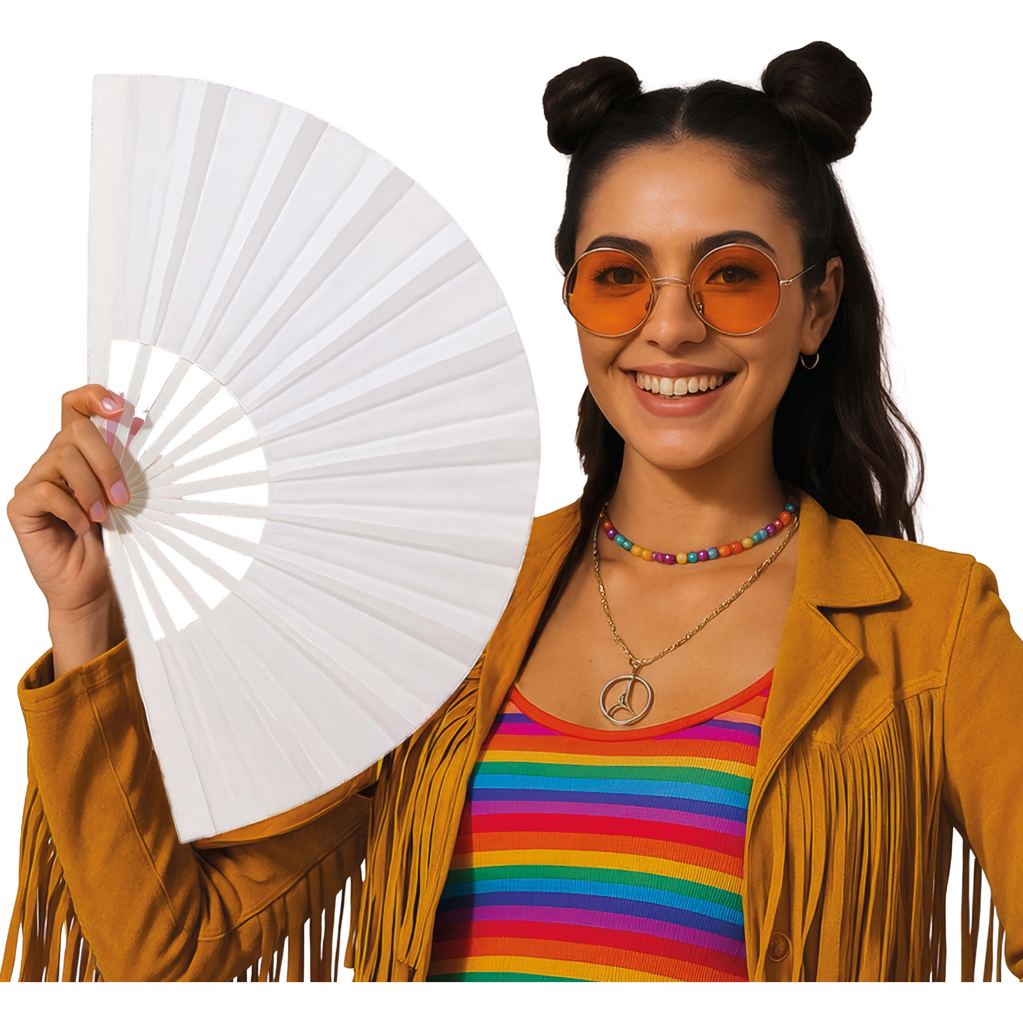 Leque de tecido dobrável 60 x 30 cm. Leve e fácil de manusear, confere um toque elegante e festivo a qualquer visual ou ambiente. Seu formato dobrável facilita o transporte e o armazenamento. Perfeito para que o senhor/a senhora complete fantasias, anime festas e se destaque em sessões de fotos e apresentações.