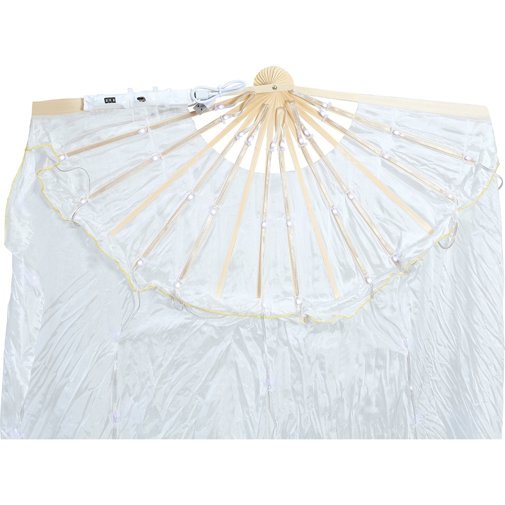 Leque LED branco de grande impacto visual, ideal como acessório para fantasias, apresentações e festas. O design amplo cria movimentos elegantes e efeitos de luz que realçam qualquer apresentação ou sessão fotográfica. As varetas de madeira e o tecido de poliéster garantem um movimento fluido e uma queda espetacular. Perfeito para que o senhor/a senhora acrescente dramatismo e luminosidade ao seu visual em carnavais, shows e eventos noturnos.