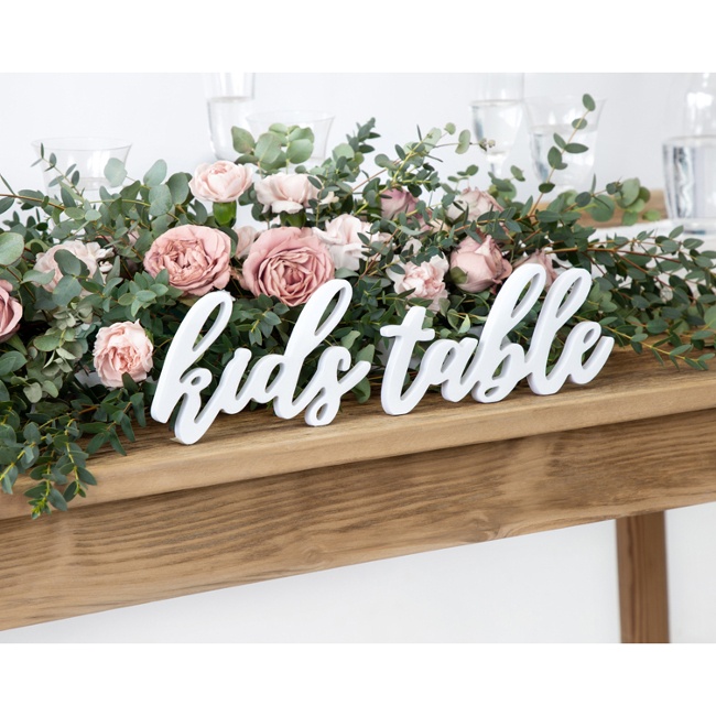Sinal de mesa para crianças em madeira branco - 38 x 10 cm