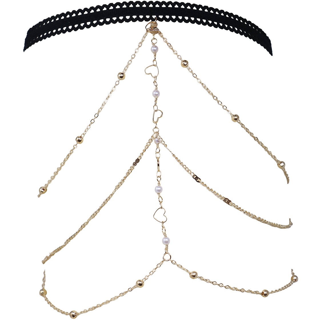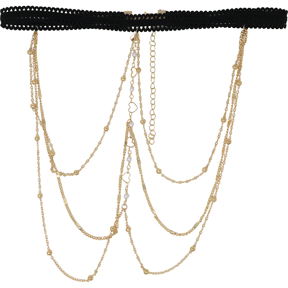 Joia de perna boho com delicados corações e múltiplas correntes que caem em cascata sobre a perna. O design combina um ar romântico e cowgirl para realçar qualquer look de festa ou festival. A banda elástica fixa a peça com conforto, enquanto as correntes metálicas e os detalhes em PVC lhe conferem brilho e movimento. Leve e fácil de colocar, adiciona um toque boémio às saias, vestidos e shorts do senhor/a senhora.
