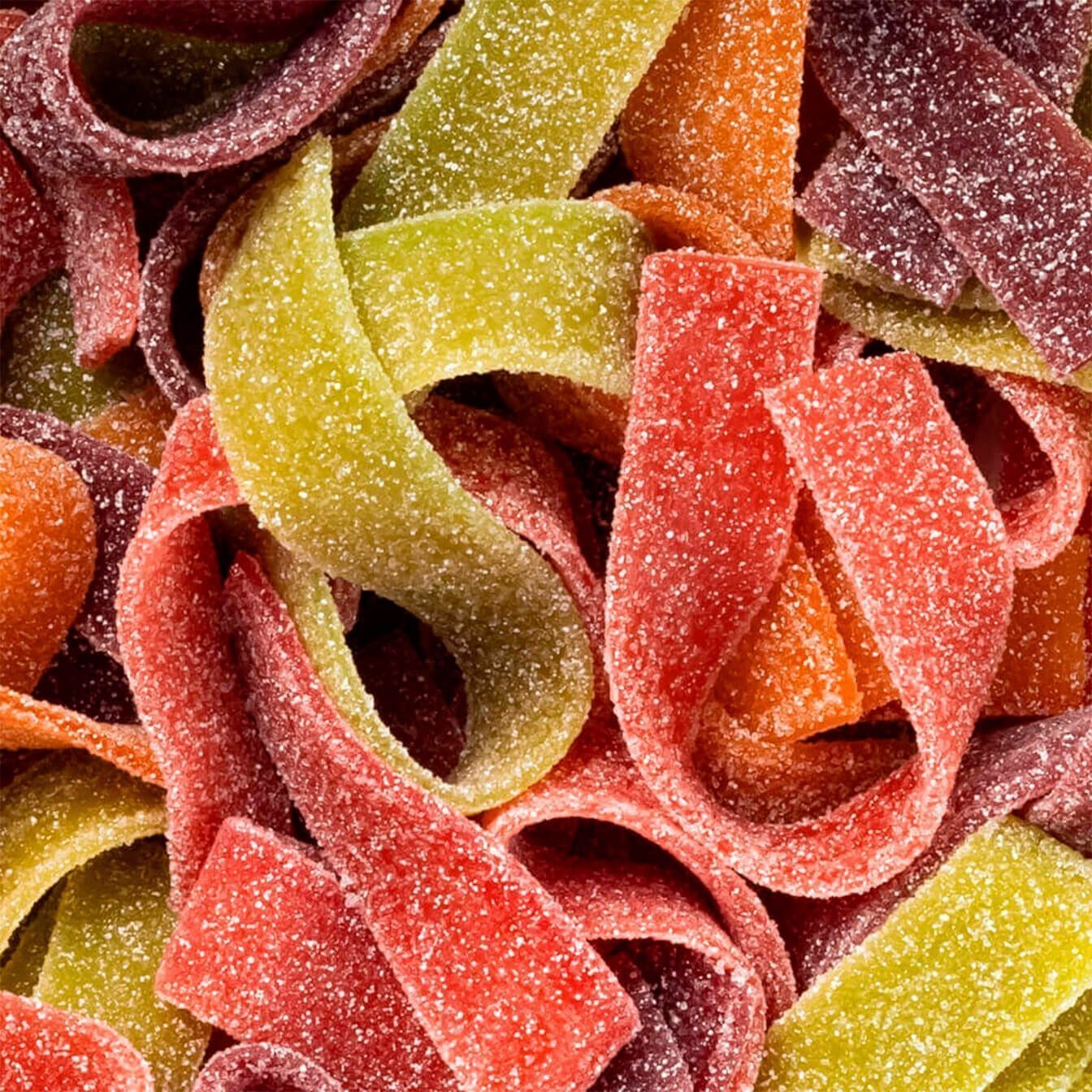Ingredientes: açúcar, xarope de glicose e frutose, farinha de trigo (contém glúten), acidulante: ácido málico, ácido cítrico, ácido lático; dextrose, gordura de palma, amido de milho, corretor de acidez: malatos de sódio, lactato de sódio, citratos de potássio; concentrado vegetal: cártamo, espirulina, maçã, abóbora, cenoura, arando, groselha negra, rabanete, tomate; aromas, antioxidante: ácido ascórbico; sal.