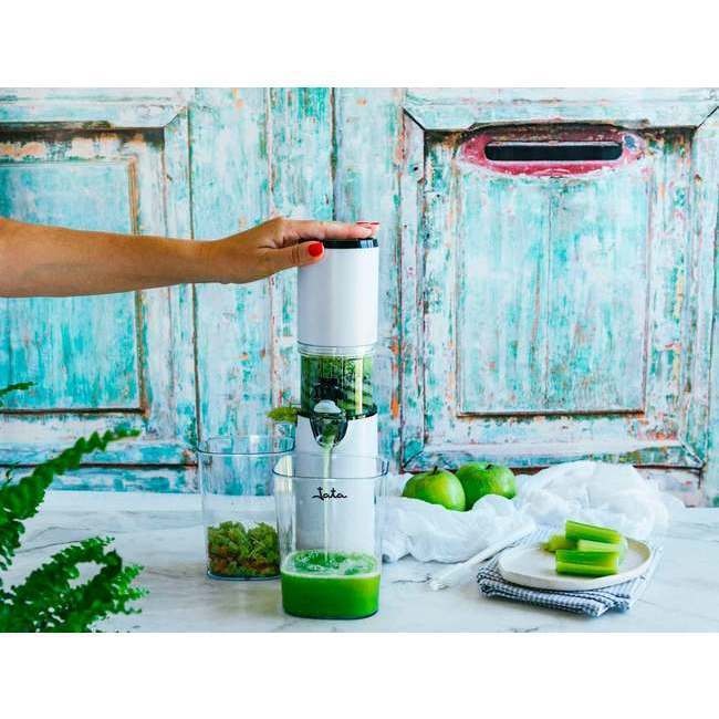 Liquidificador com design fino de extração lenta, adequado para extrair sumo de frutas, legumes e verduras.