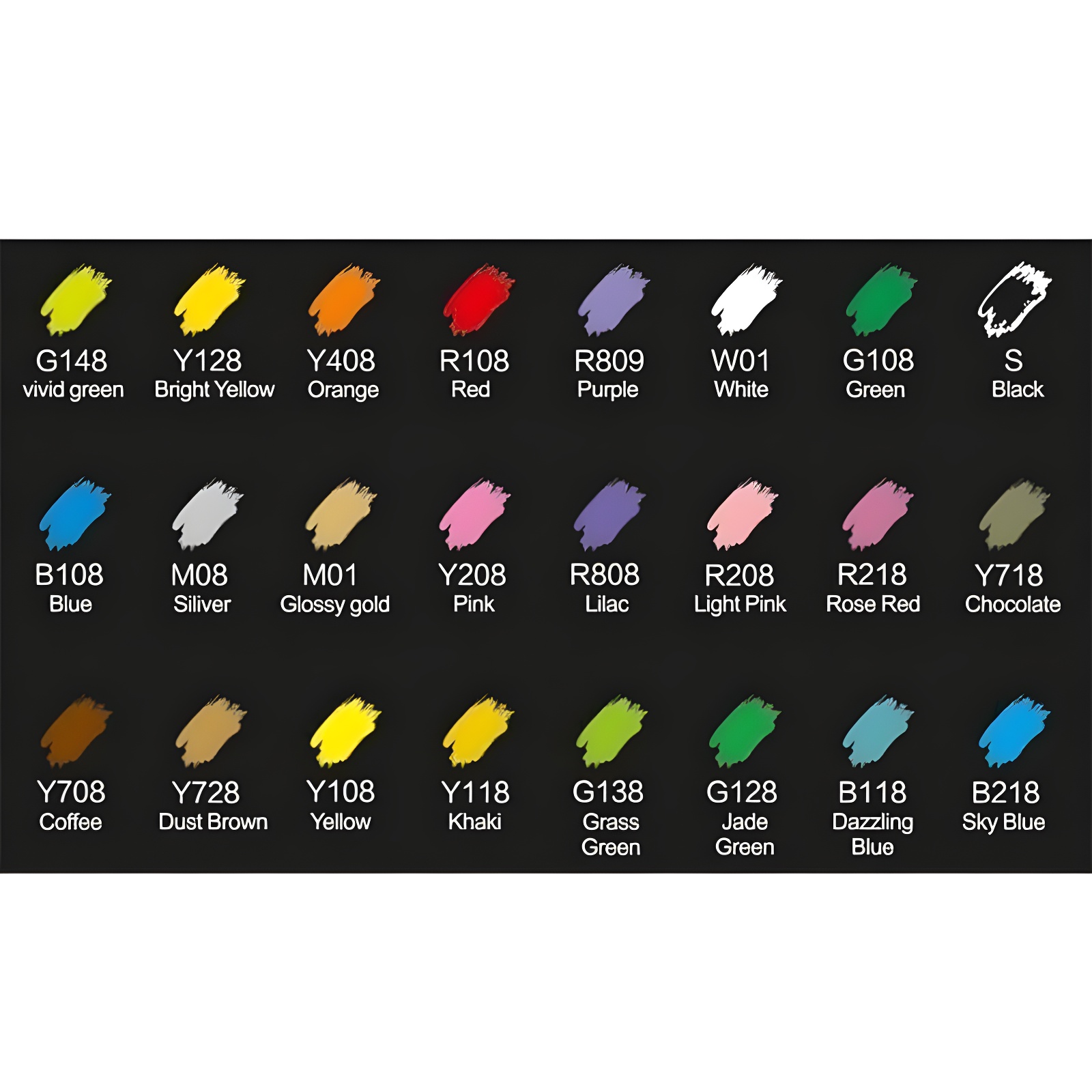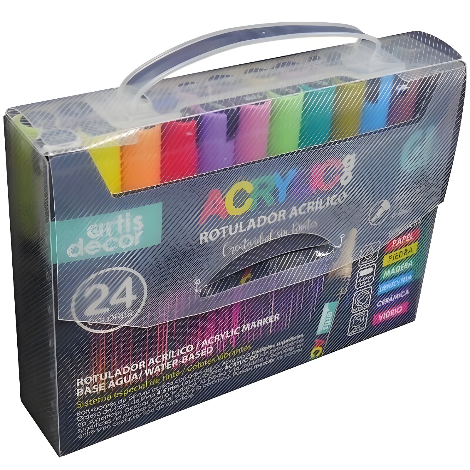 - Conjunto com 24 marcadores acrílicos à base de água.