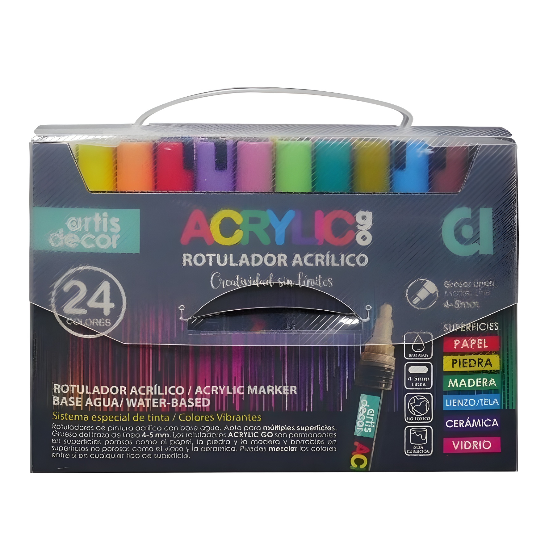Marcadores acrílicos Acrylic Go de 4-5 mm tons básicos - Artis Decor - 24 unidades