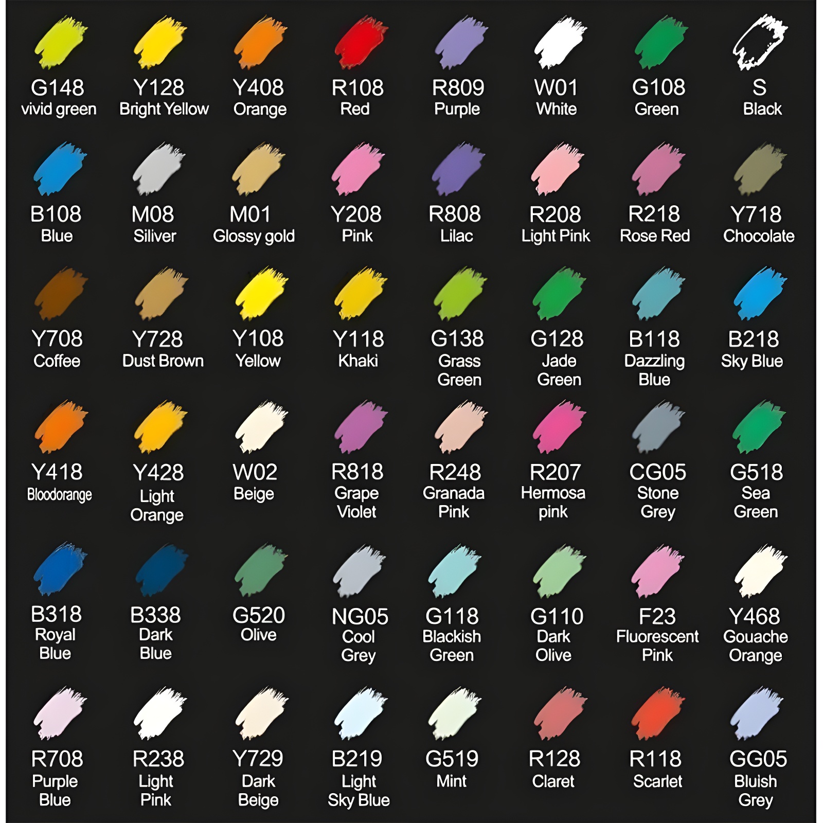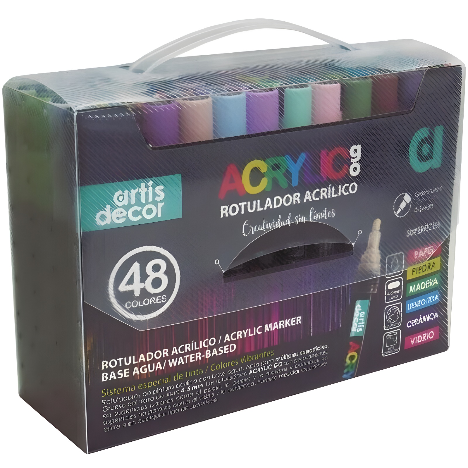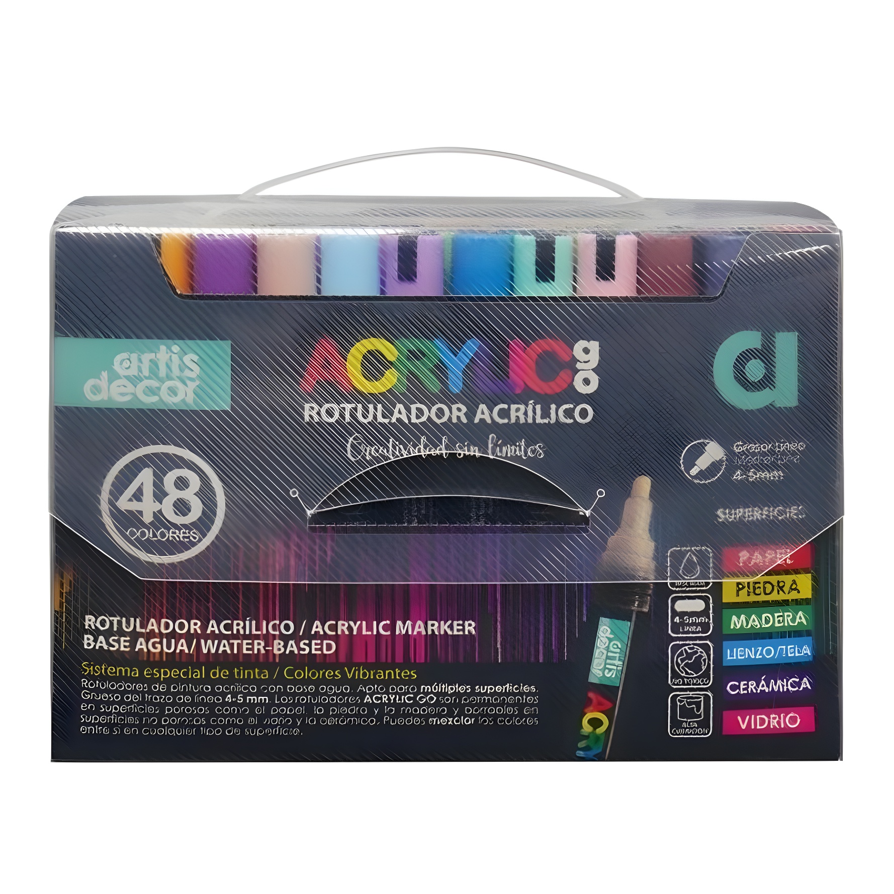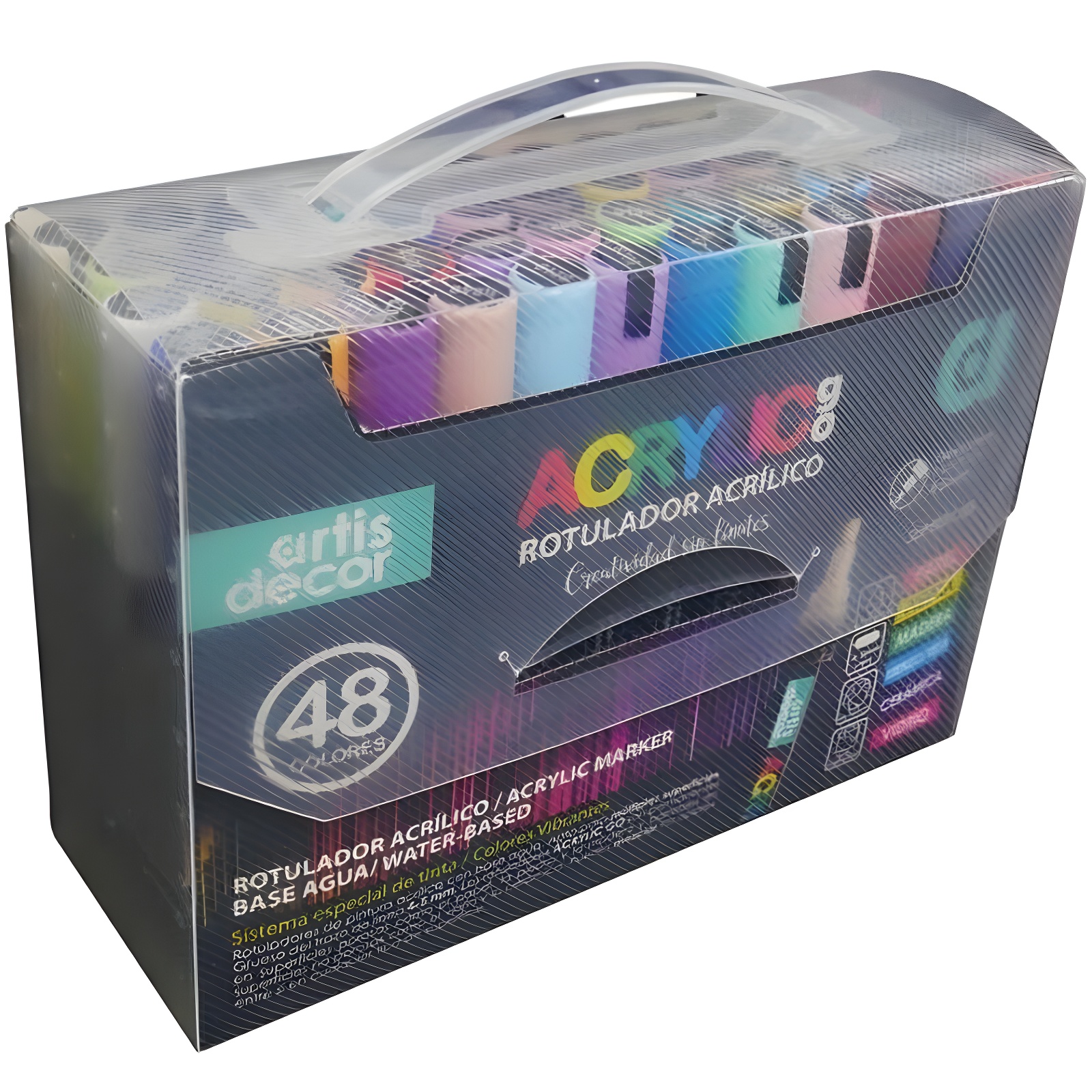 - Conjunto de 48 marcadores acrílicos à base de água.
