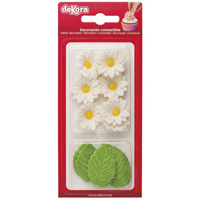 Figuras de açúcar com margaridas e folhas - Dekora - 12 unidades