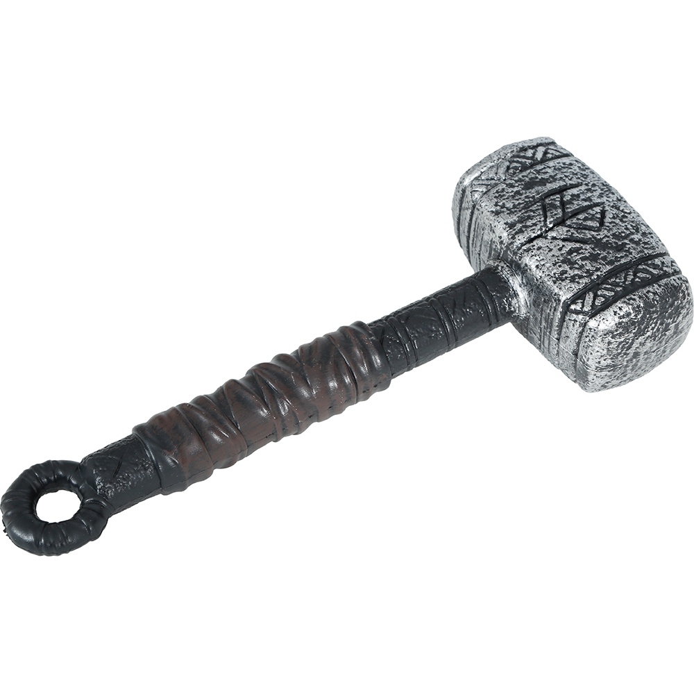 Complemento imprescindível para completar o visual de guerreiro nórdico ou de super?herói mitológico do senhor/da senhora. Martelo de 35 cm com acabamento envelhecido que imita pedra e couro, ideal para Carnaval, festas temáticas e sessões de fotos. Fabricado em PVC leve e resistente para um uso confortável e seguro durante todo o evento. Detalhes esculpidos que proporcionam um aspecto realista sem comprometer a leveza.