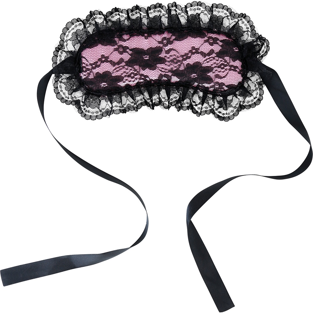 Máscara sensual rosa com elegante renda preta que realça o olhar e acrescenta um toque sedutor aos seus momentos íntimos.