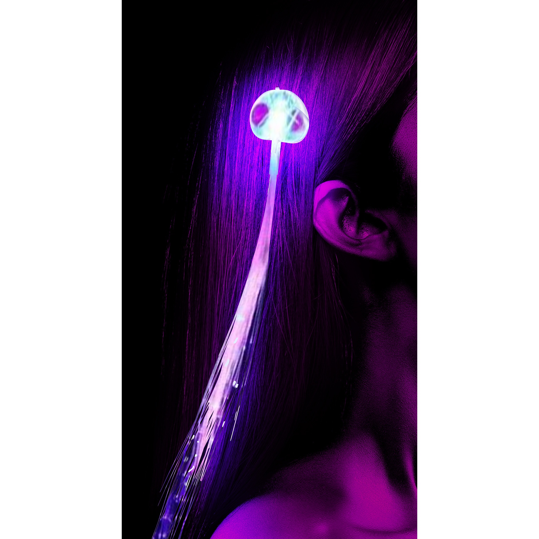 Mecha luminosa pensada para dar um toque marcante ao seu visual em concertos, raves e festas noturnas. Os fios de fibra criam um efeito de luz dinâmico e colorido que se movimenta com o cabelo, perfeito para destacar-se na pista.