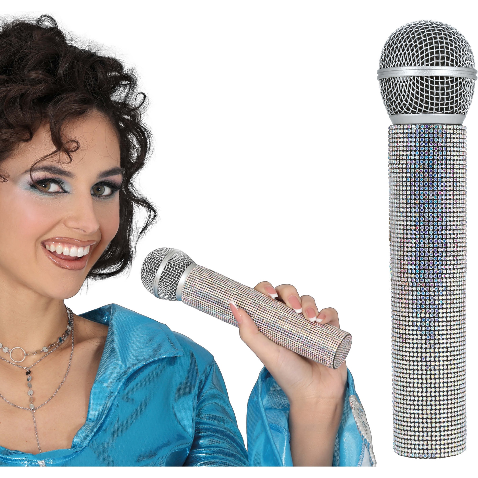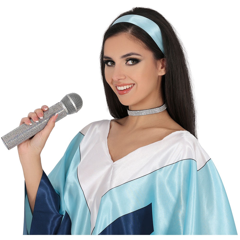 Faça brilhar a sua atuação com este microfone estilo ABBA, concebido para acrescentar um toque retrô e glamoroso aos seus disfarces e apresentações. O acabamento brilhante com strass reflete a luz e atrai todos os olhares no palco. Leve e fácil de segurar, é perfeito para karaokê, festas temáticas e espetáculos retrô. Um acessório impactante que transforma qualquer visual numa atuação memorável.