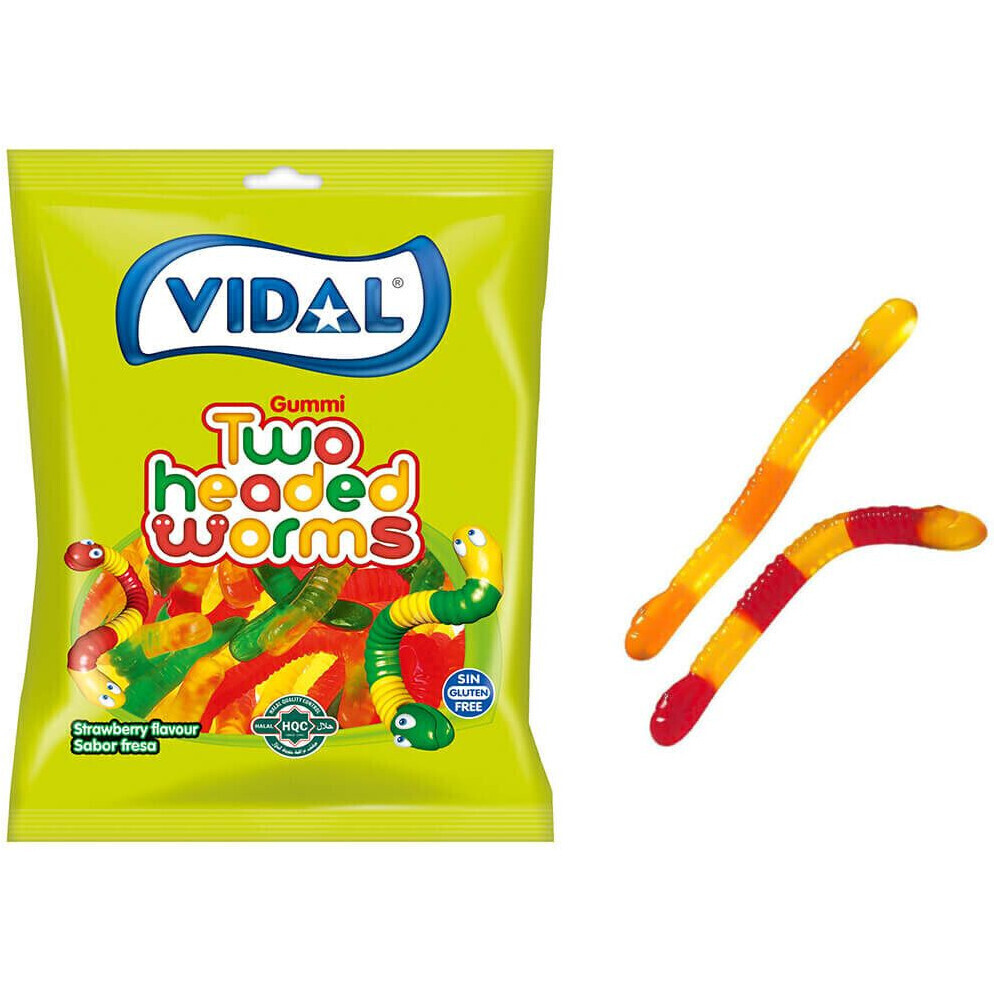 - Guloseima em forma de minhocas originais bicéfalas com intenso sabor de morango e uma textura suave que o deixará surpreso.