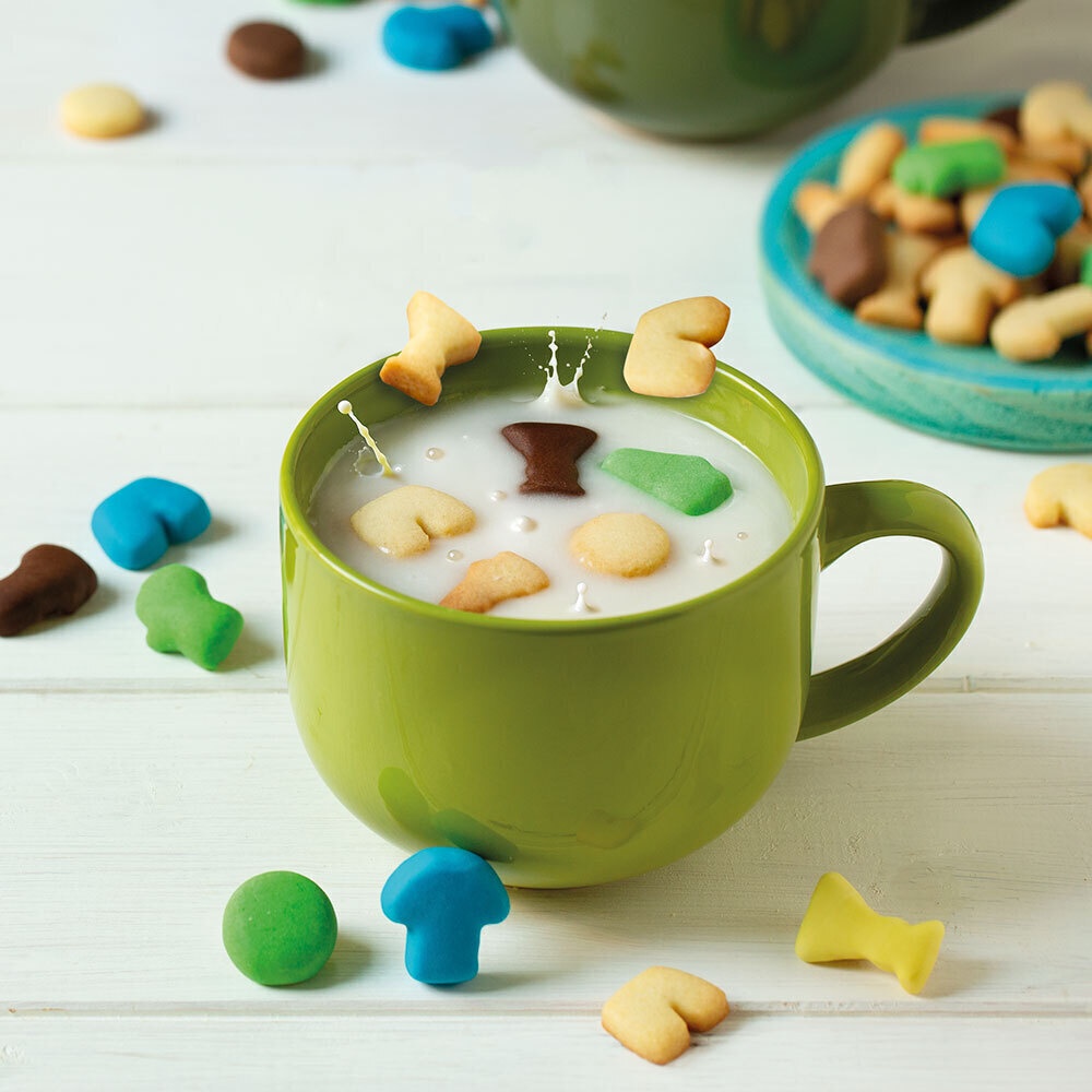 - Dimensões do biscoito aprox.: 1,8 a 3 x 2,8 x 1,2 cm