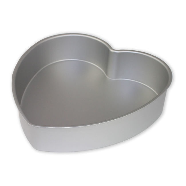 Molde em forma de coração criado com uma espessura de parede uniforme e uma construção sem costuras que lhe dá um bolo suave e com bordas rectas.