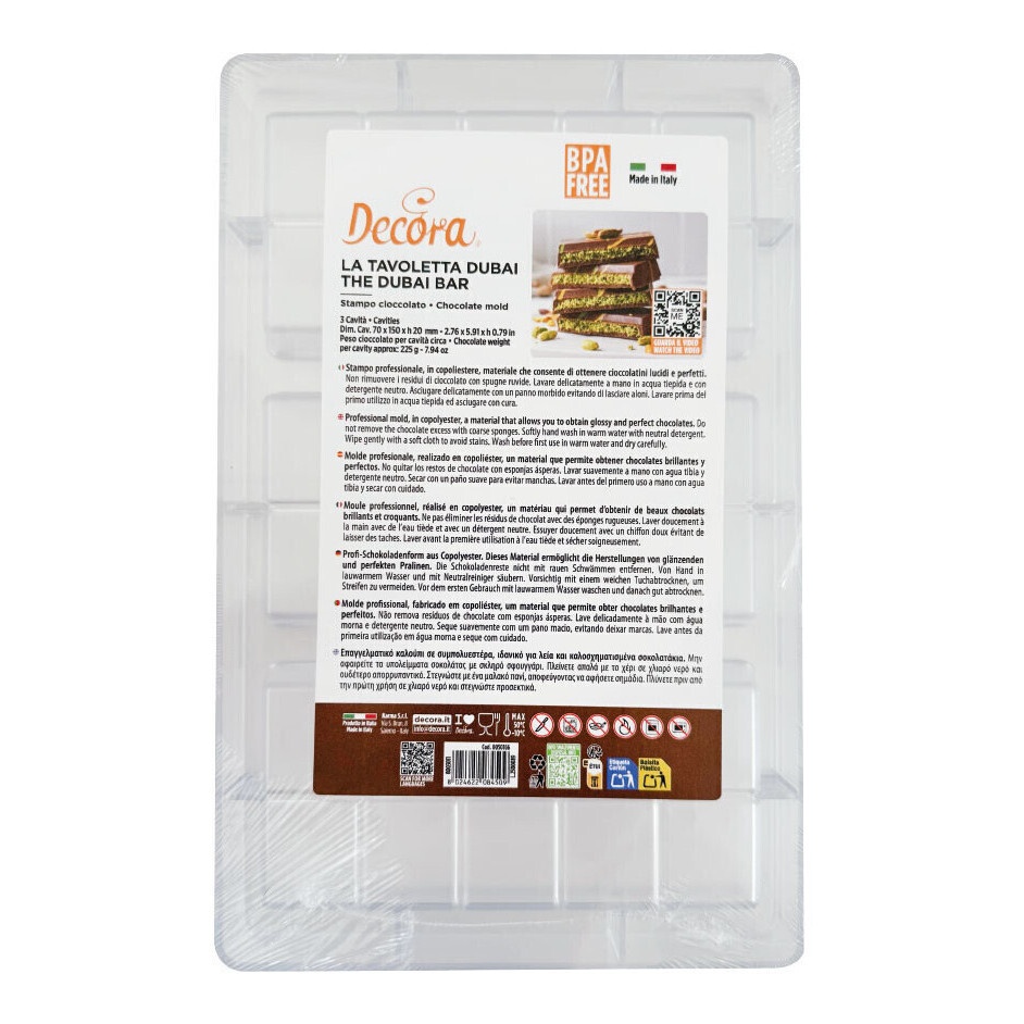 Molde de tablete de chocolate de 15 x 7 x 2 cm - Decora - 3 cavidades
