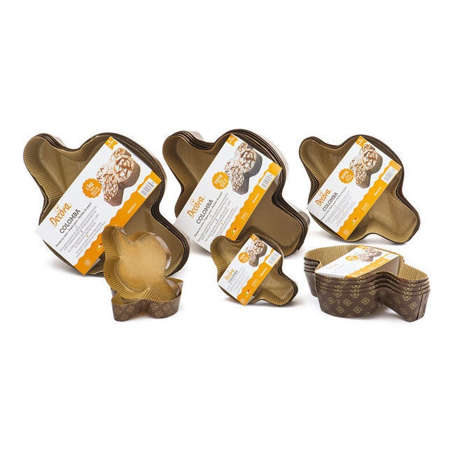 Embalagem de moldes descartáveis ideais para fazer as típicas pombas italianas típicas da Páscoa.
