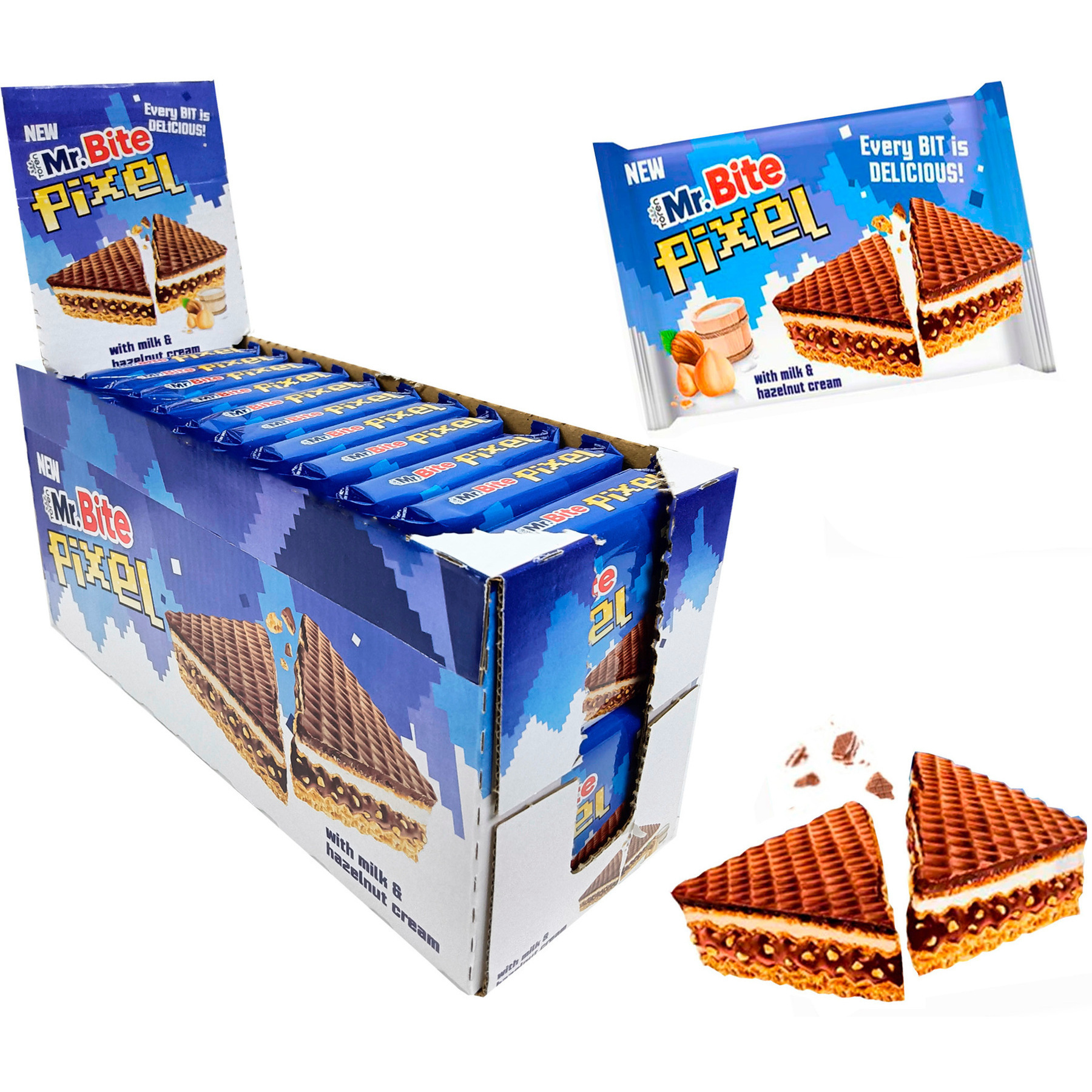 Mr Bitel Pixel chocolate com creme de avelã 30 gr - 24 unidades