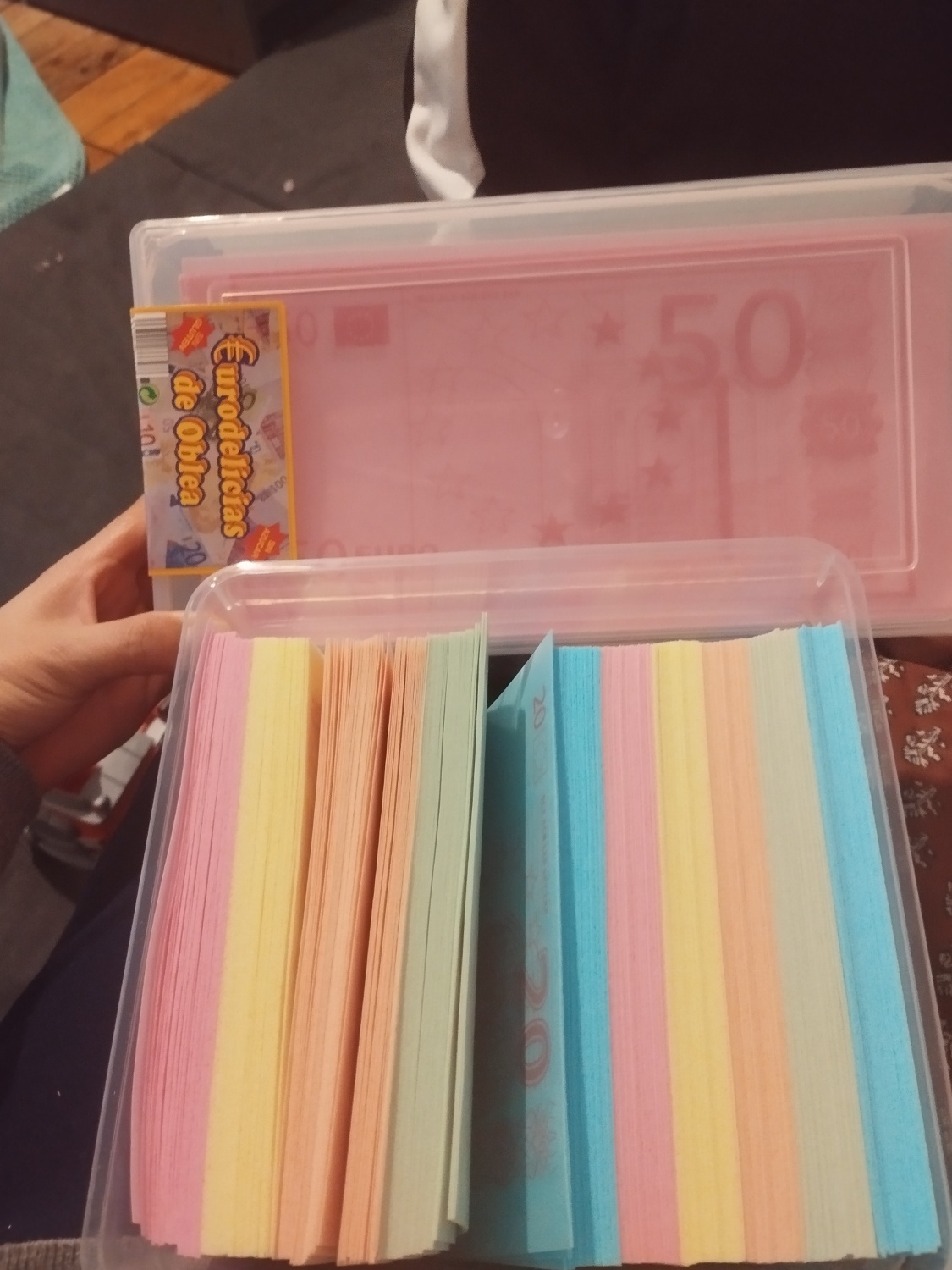 Fantástico conjunto de bolachas comestíveis com o desenho de uma nota de banco em diferentes cores. Apresentadas numa prática caixa de plástico para as conservar durante mais tempo e com a melhor qualidade possível.
