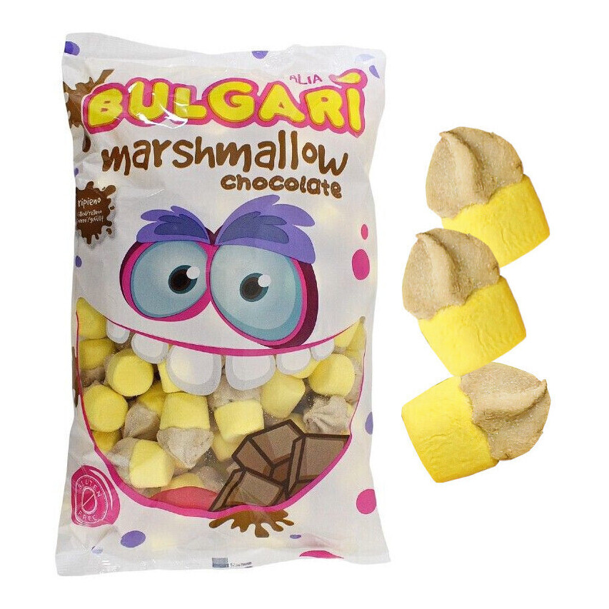 Ingredientes: açúcar, xarope de glucose-frutose, água, gordura vegetal (óleo de girassol, óleo de palma, óleo de semente de algodão, óleo de cártamo e óleo de farelo de arroz), agente gelificante: gelatina alimentar, leite inteiro em pó, lactose em pó, leite desnatado em pó, cacau desengordurado em pó, cacau alcalino em pó, aromas, corante: E100, E150c, emulsionante: lecitina de soja 322; amido de milho.