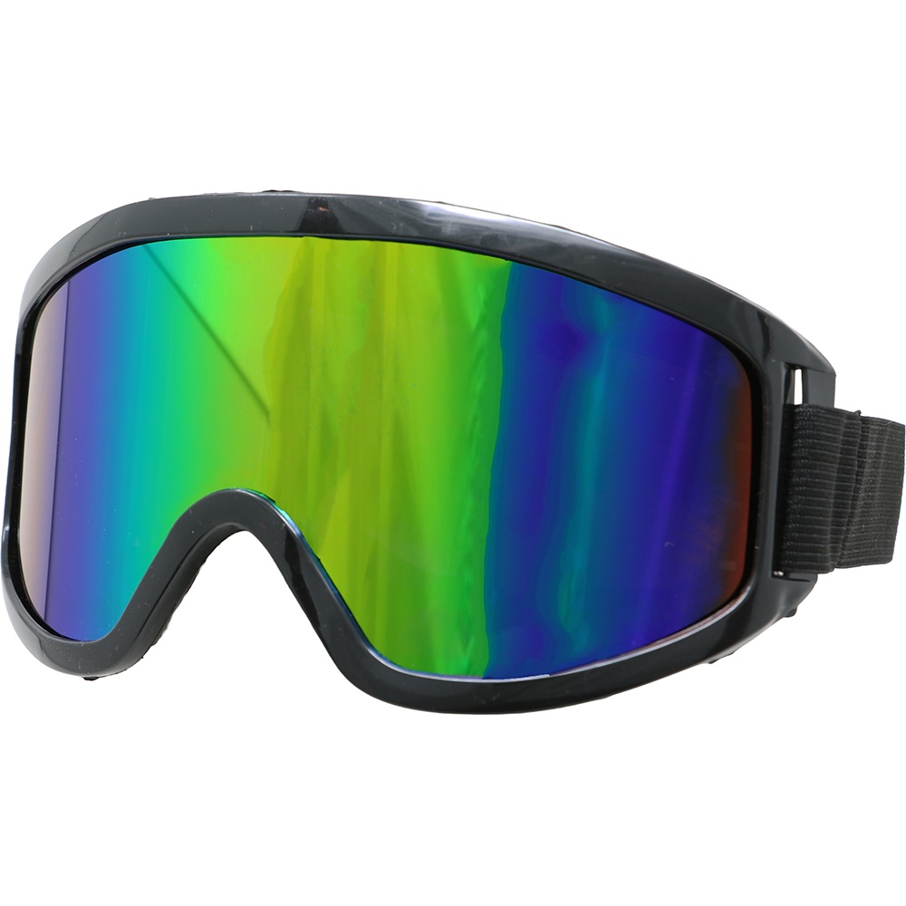Lente espelhada multicolor que reflete tons verdes e azuis, criando um efeito visual impactante.