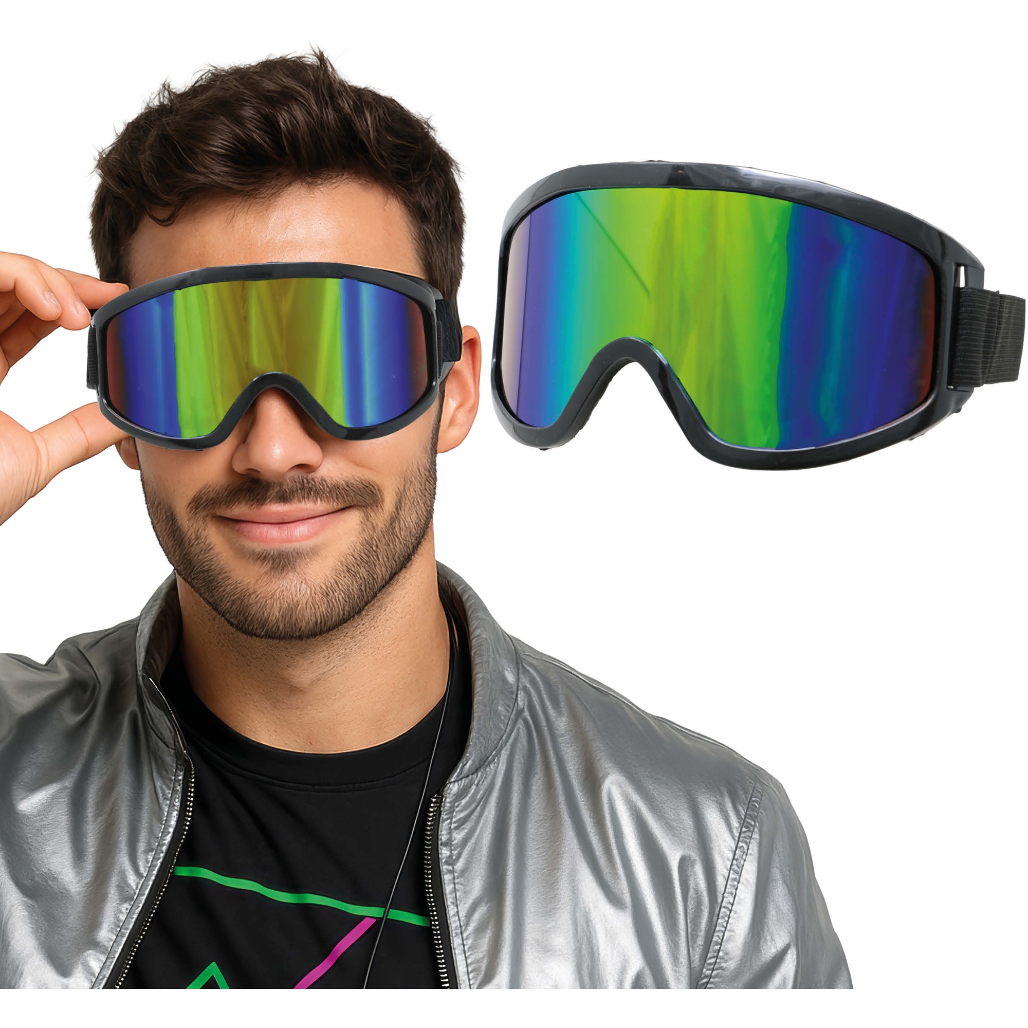 Óculos de esqui com design retrofuturista inspirado na estética Tron, que confere um toque marcante a qualquer visual.