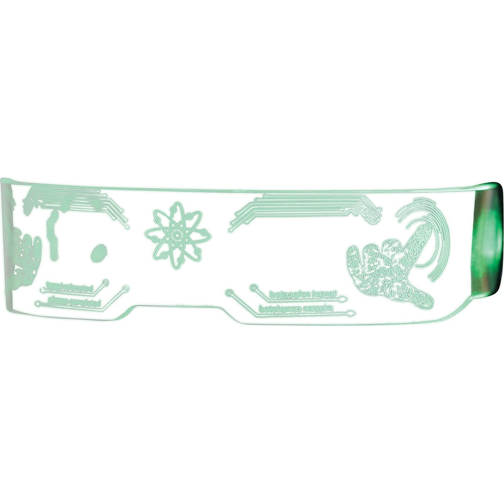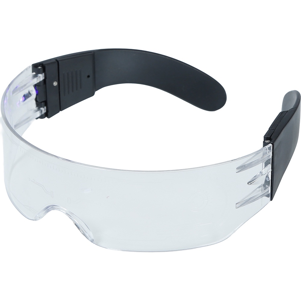 Óculos retrofuturistas com iluminação LED multicolor, projetados para se destacar em festivais, raves e festas noturnas.