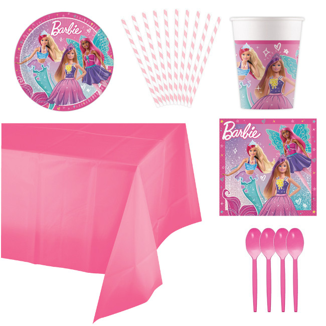É um pacote com tudo o que é necessário para desfrutar de uma festa temática da Barbie.