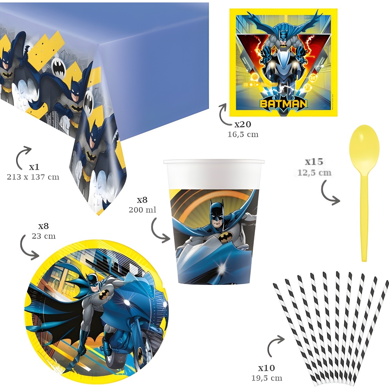 Este é um pack com tudo o que é necessário para desfrutar de uma festa temática do Batman.