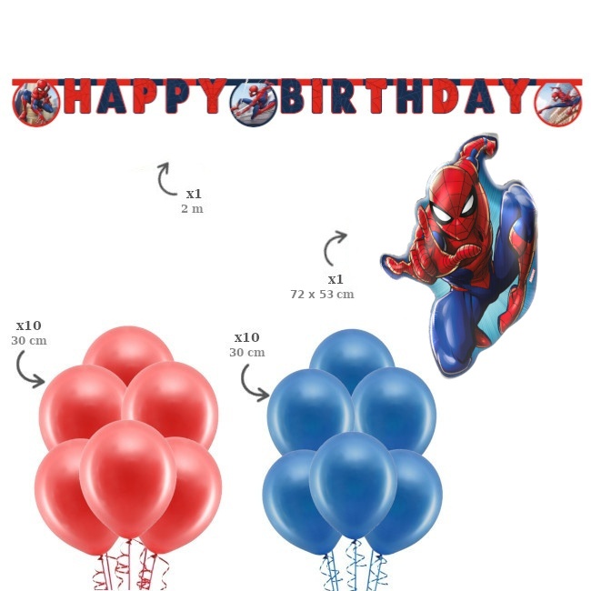 É um pacote com tudo o que é necessário para desfrutar de uma festa temática do Homem-Aranha.