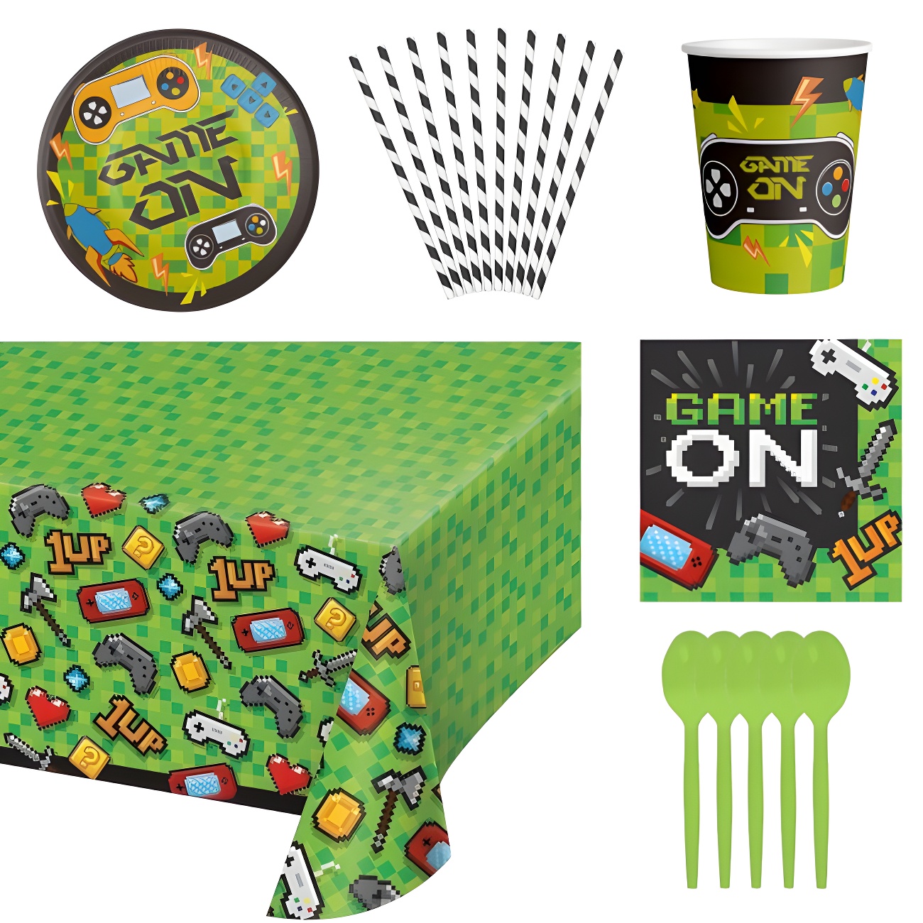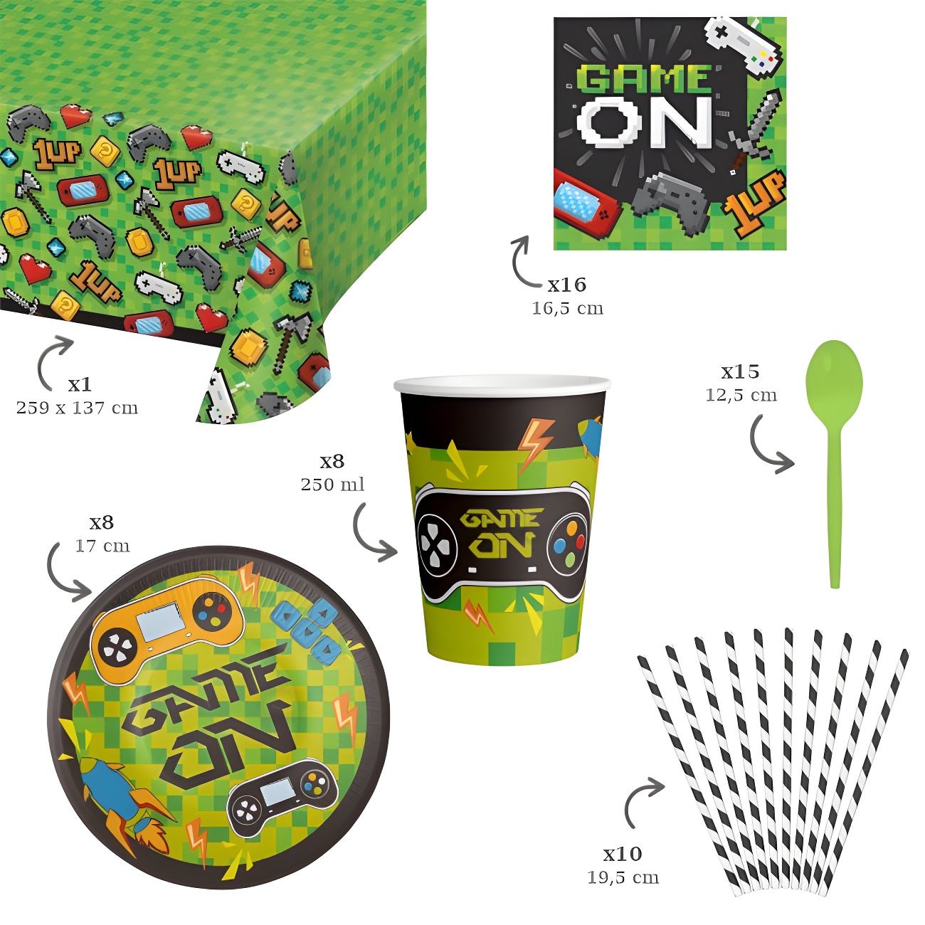 Pack festa videojogos verde - 8 pessoas