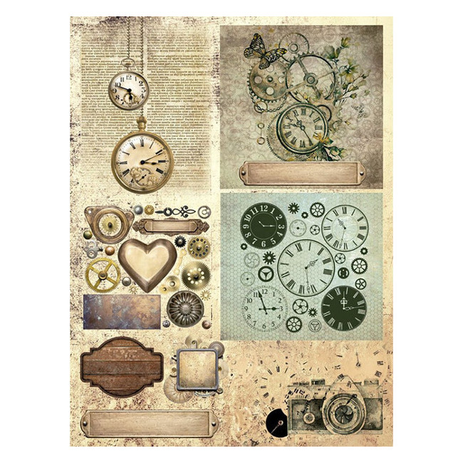 29,7 x 42 cm papel de arroz de relojoaria vintage - Artis decor - 1 unid.