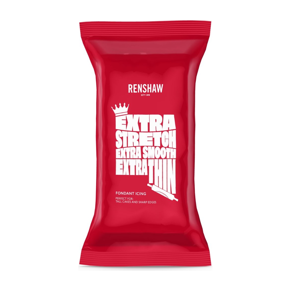 O Renshaw Extra Pasta de açúcar Branco oferece um acabamento branco brilhante e uniforme, concebido para bolos altos e desenhos com bordas bem definidas.