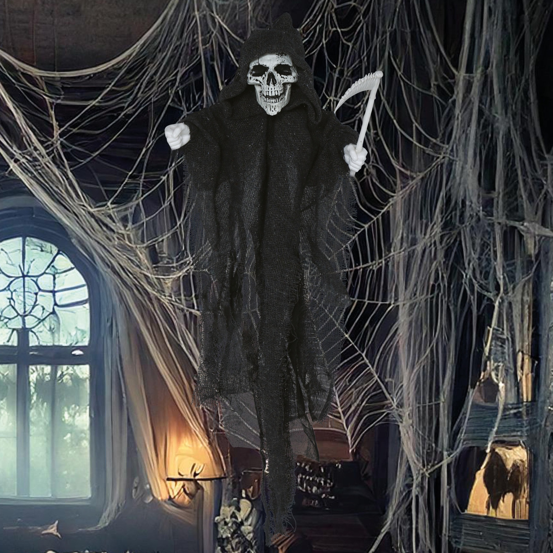 Mantener fuera del alcance de los niños pequeños para evitar riesgos de asfixia o estrangulamiento con las cuerdas o partes colgantes.