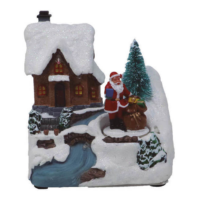 Casinha com o Pai Natal com música e luz 11 x 13 cm