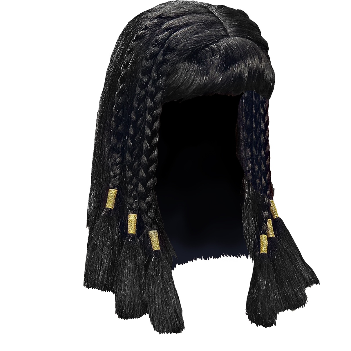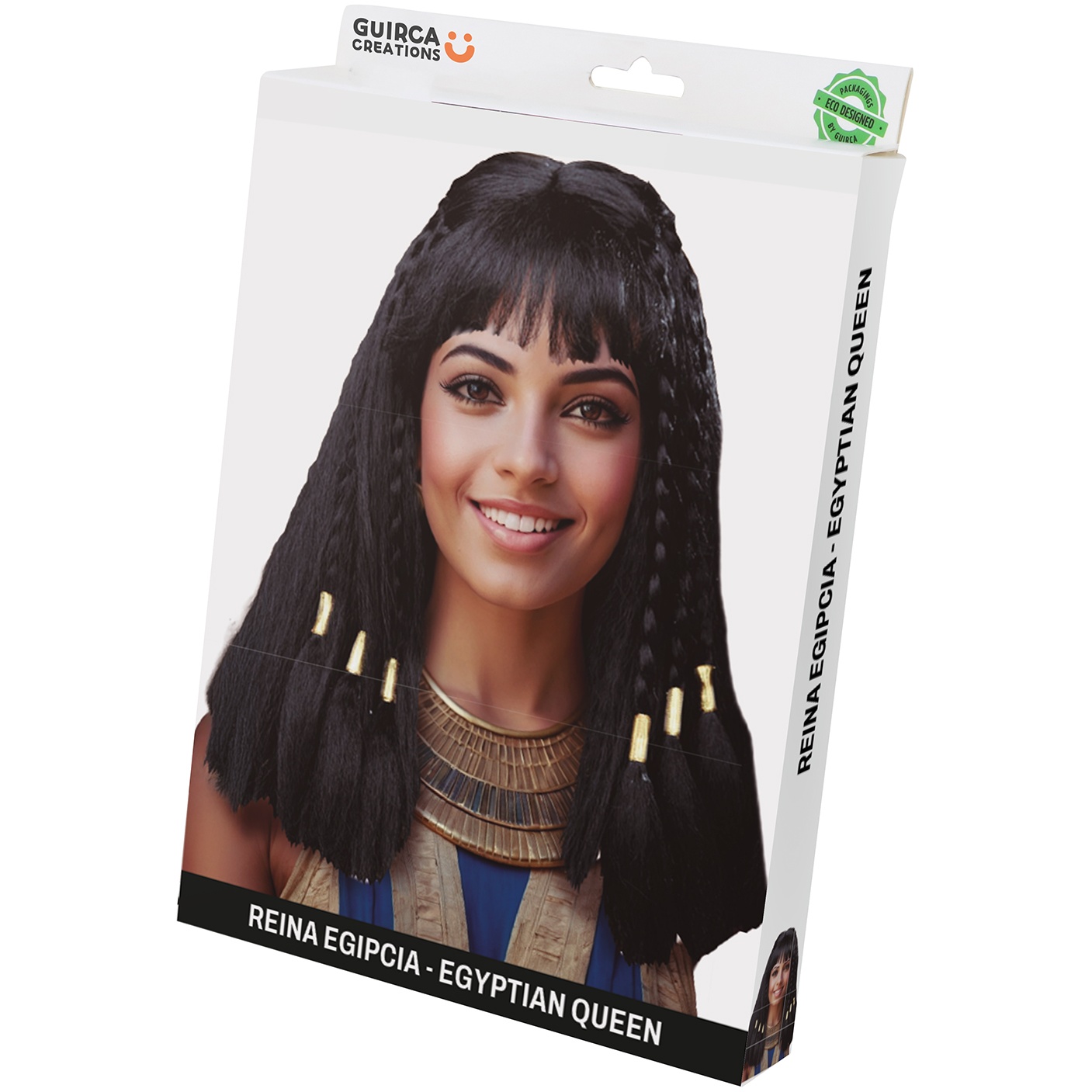Obtenha um aspeto autêntico de rainha do Nilo com esta peruca Cleópatra concebida para mulher adulta. Apresenta franja reta e mechas longas com tranças laterais decoradas com detalhes dourados que realçam o estilo egípcio clássico. O volume e a caída proporcionam um acabamento dramático e elegante que completa qualquer caracterização histórica ou teatral. Tamanho único pensado para se adaptar confortavelmente à maioria das cabeças adultas.