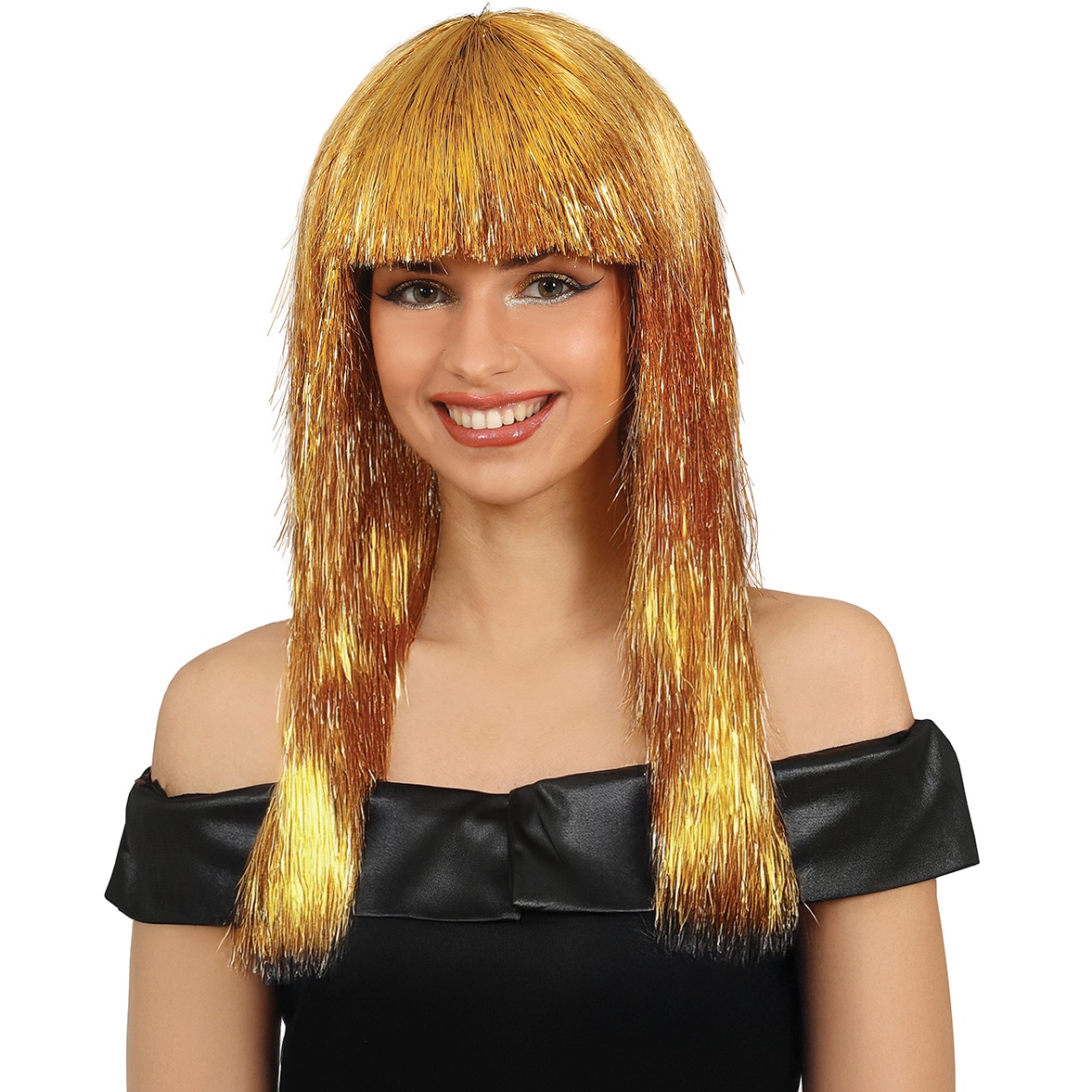 Transforme o seu visual instantaneamente com esta peruca Cleópatra de cabelo longo e franja reta.