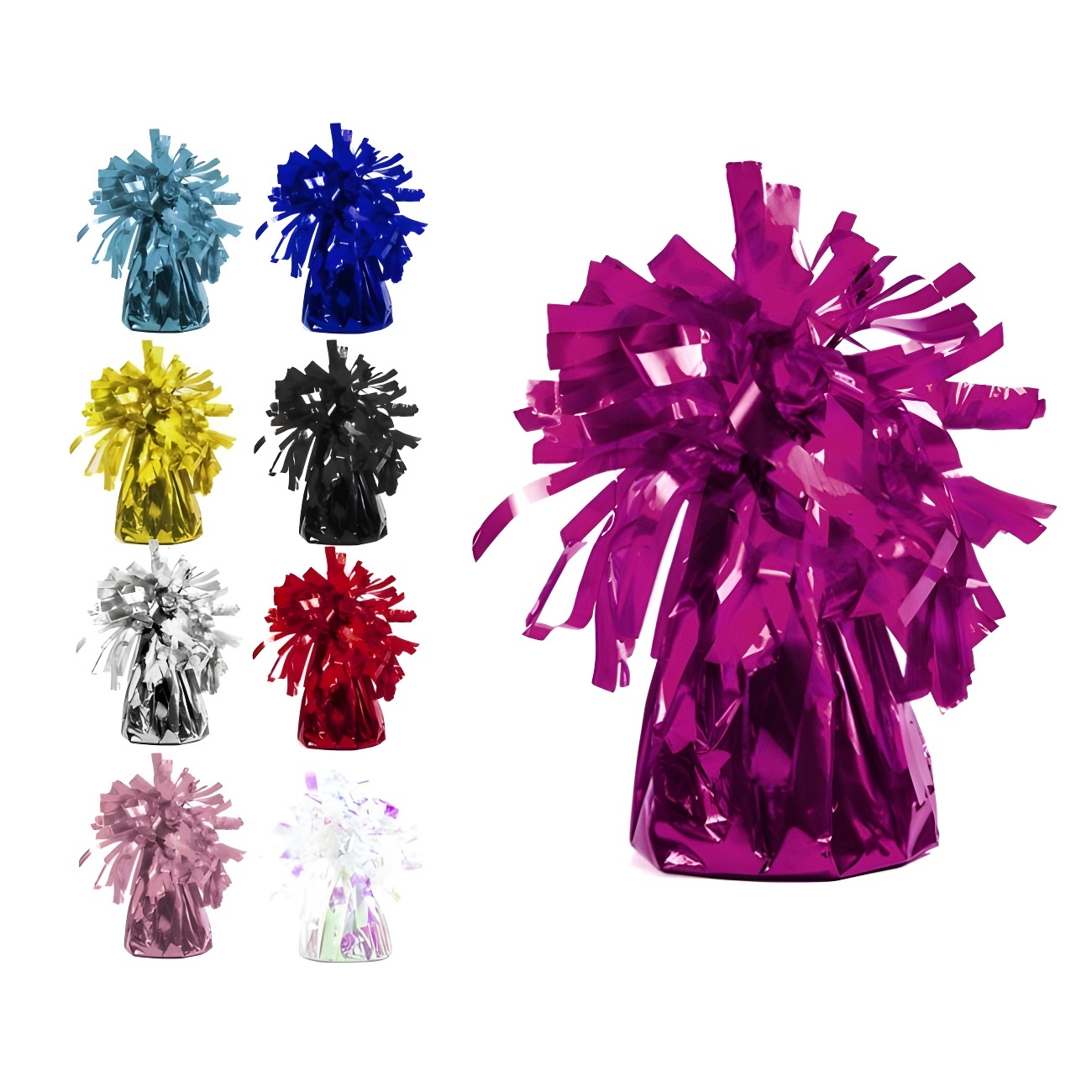 Acessório para balões em forma de peso revestido de papel metalizado.