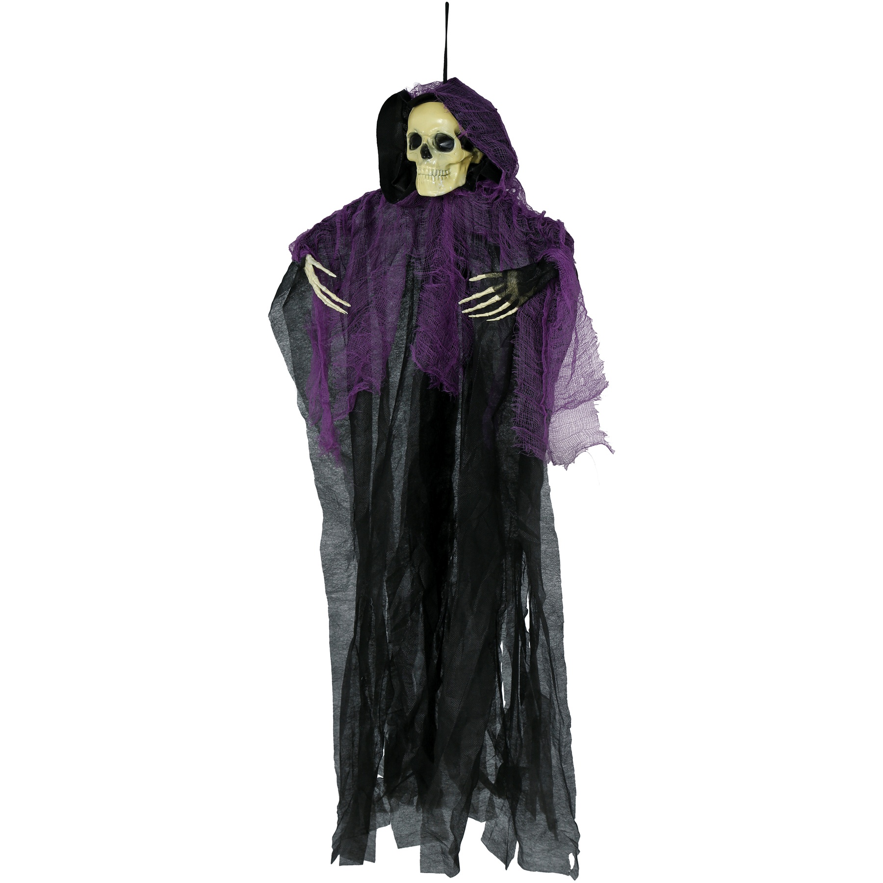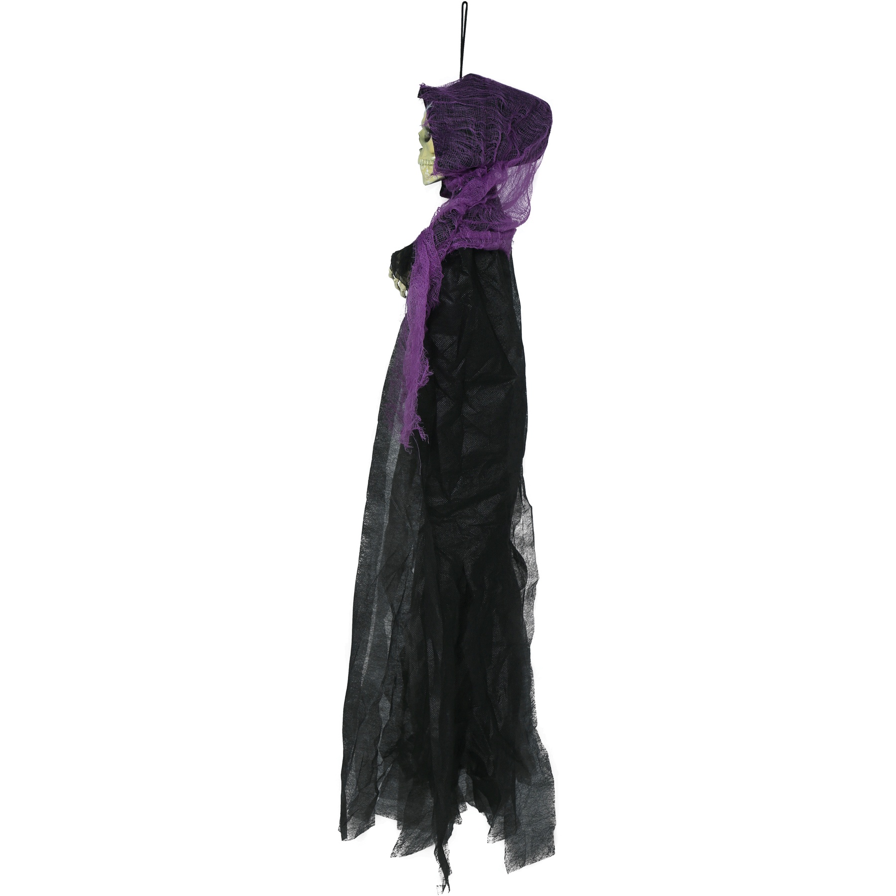 Pingente de Esqueleto com Túnica Preta e Lilás de 90 cm