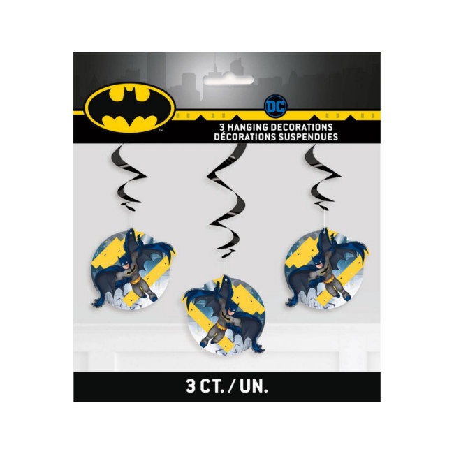 É composto por 3 tiras pretas em forma de espiral com um aspeto metálico e uma decoração na extremidade feita de cartão com a imagem do Batman.