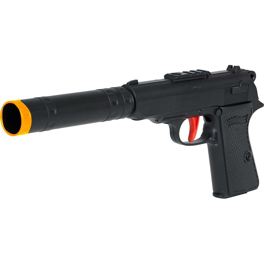 Réplica de brinquedo com silenciador, ideal para completar o visual de agente secreto ou para ambientar festas temáticas. Fabricada em PVC, alia um aspecto realista a um peso leve, oferecendo maior conforto ao segurá-la. Mede aproximadamente 29 cm, o que a torna fácil de empunhar e manusear em photocalls, carnavais e outros eventos.