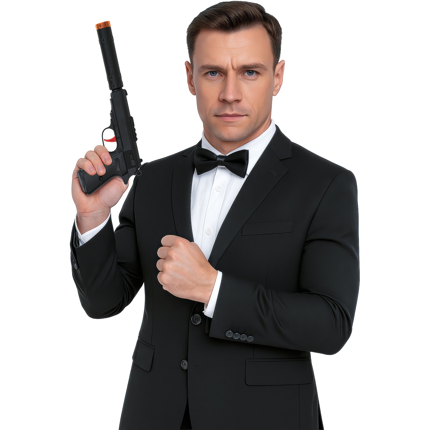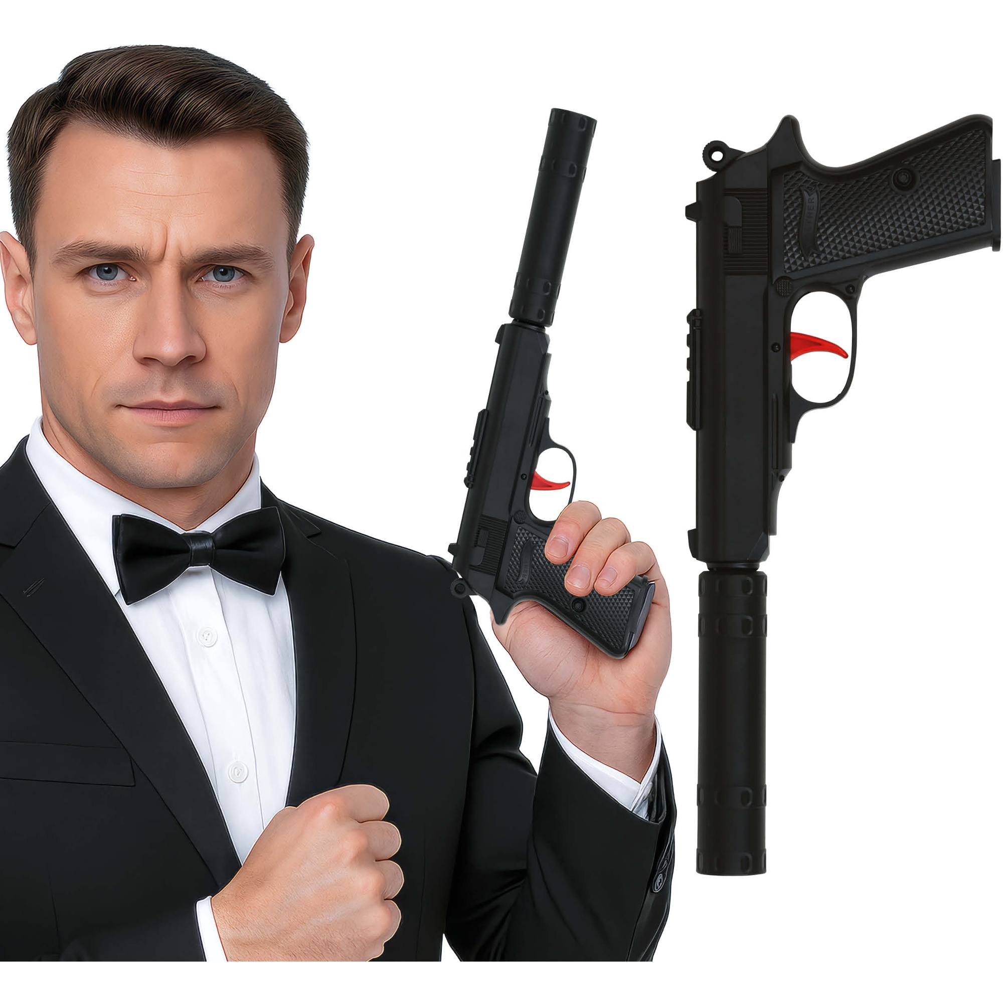 Uso exclusivo como acessório para disfarces e decoração; não se trata de uma arma real. Perfeita para que o senhor/a senhora combine com trajes formais ou com disfarces de espião, vilão ou personagem cinematográfico.