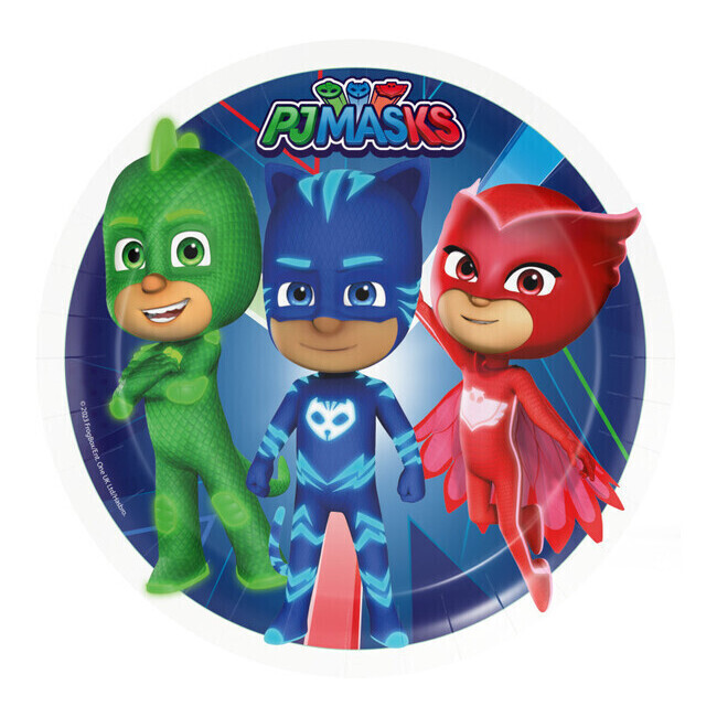 Conjunto de pratos coloridos com o tema PJ Masks.
