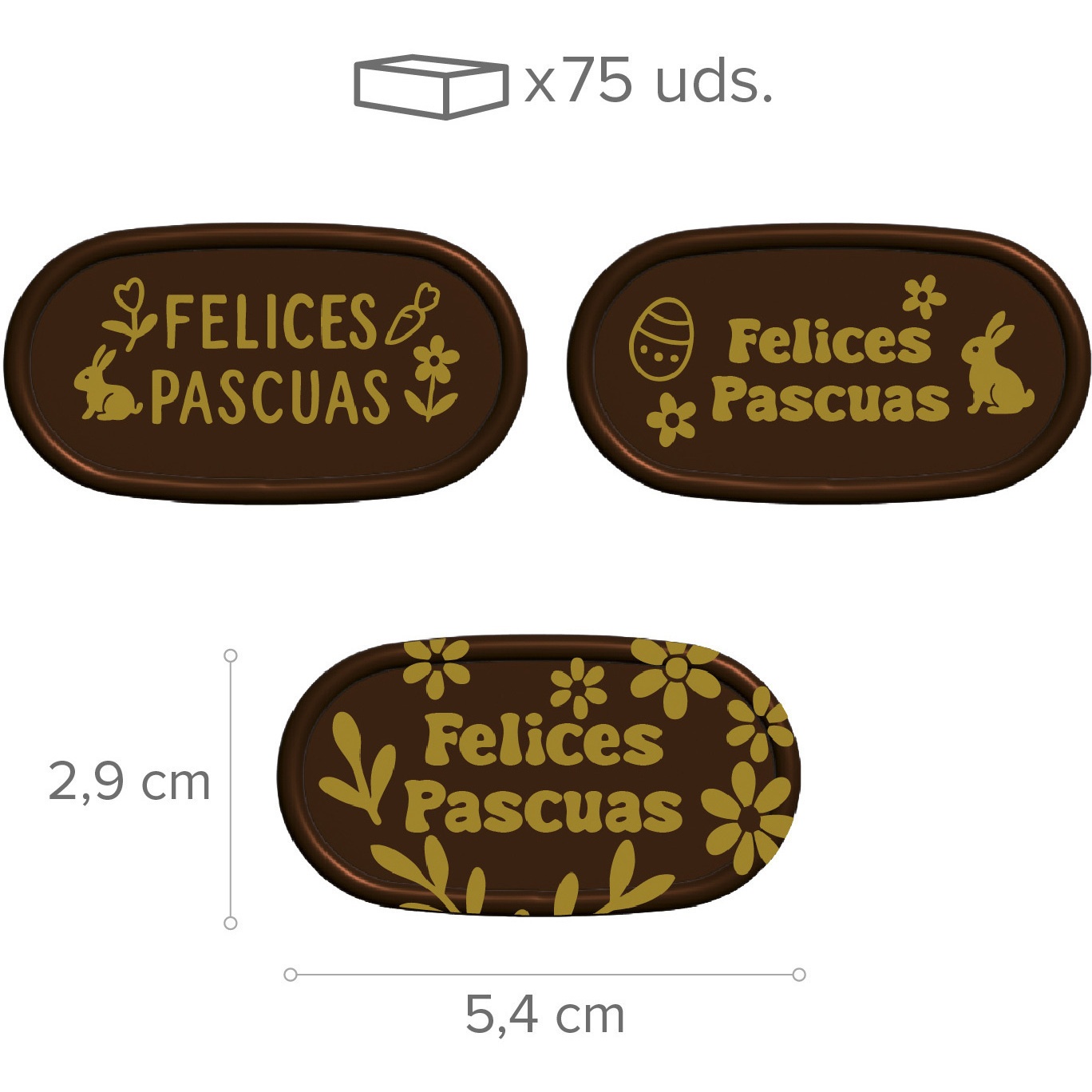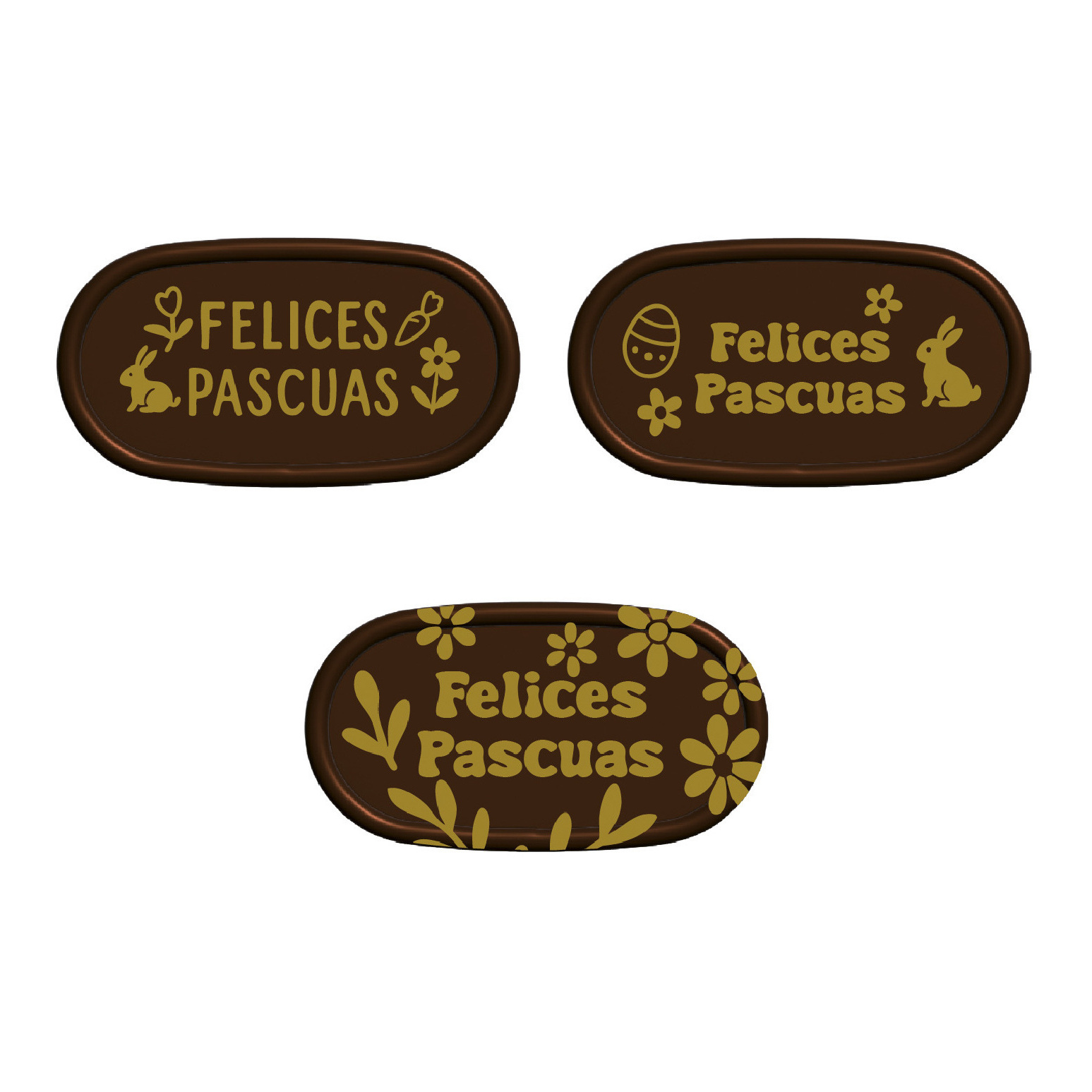 Placa de chocolate negro "Felices Pascuas" de 5,4 x 2,9 cm - 75 unidades