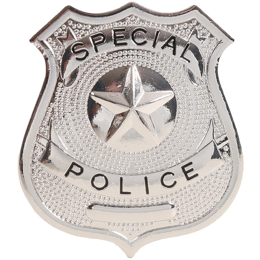 Acessório para completar o seu disfarce de polícia. É composto por um distintivo de polícia prateado com um alfinete de segurança para fixar em qualquer peça de vestuário.