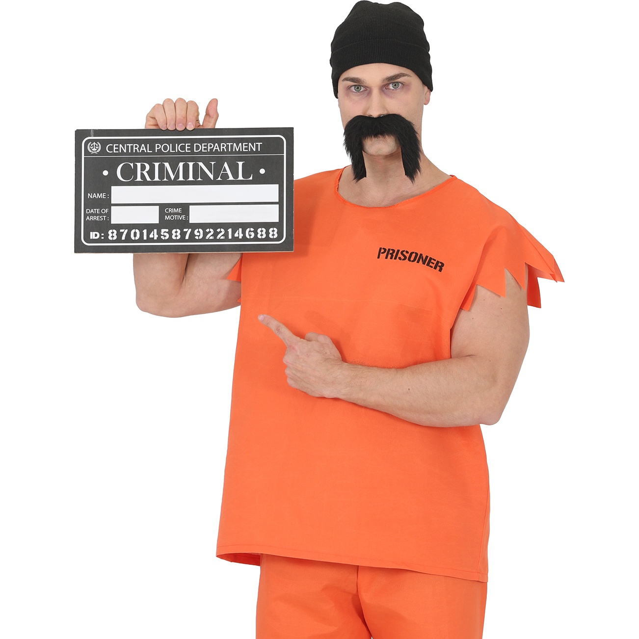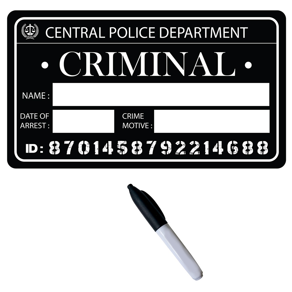 Placa policial em PVC com design tipo ficha policial para dar um toque realista às suas fotos e photocalls. A superfície permite escrever e apagar com facilidade para personalizar nomes, datas e motivos. Leve e resistente, é ideal para festas temáticas, sessões fotográficas e como acessório de disfarces. Produto reutilizável e de manuseio simples.