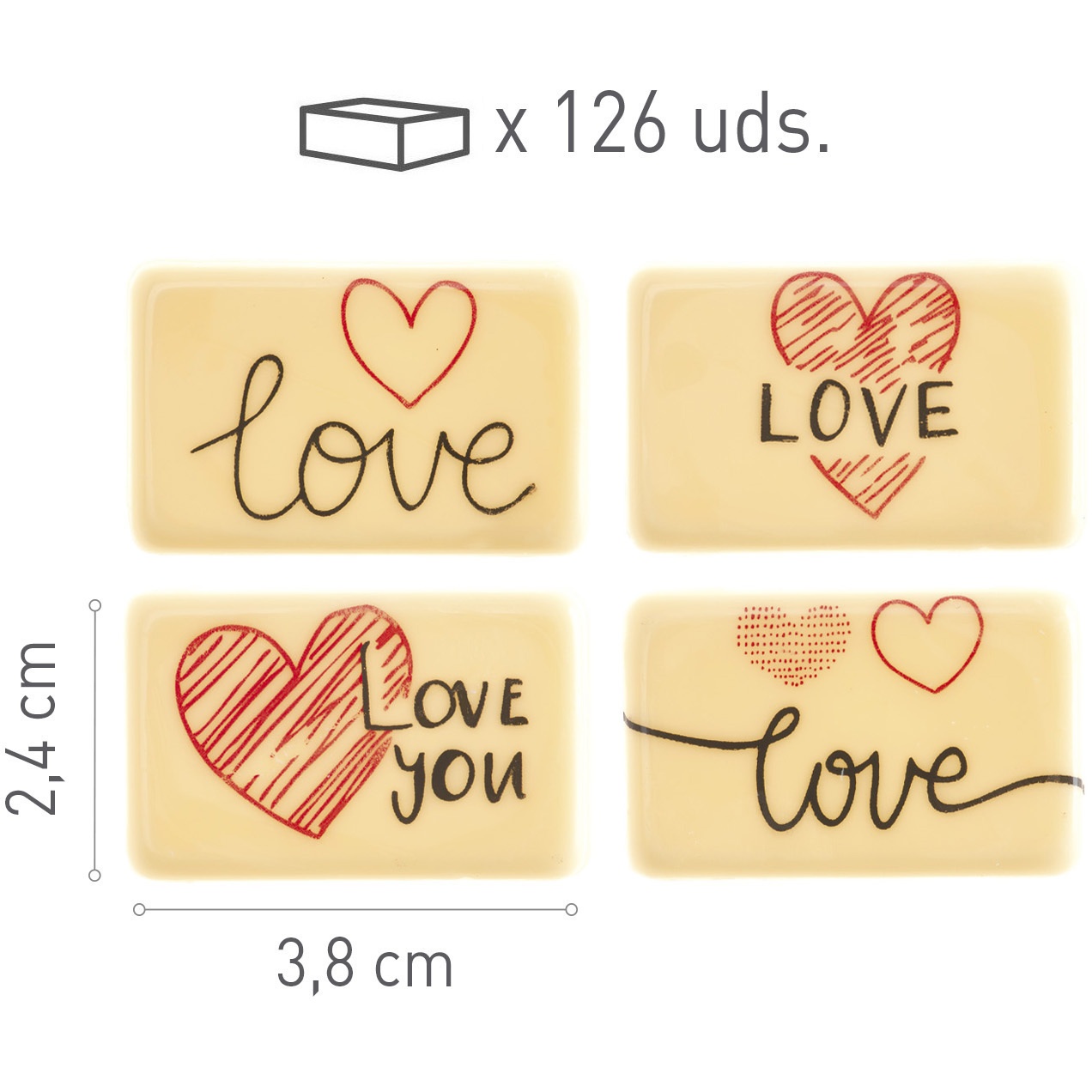Plaquinhas de chocolate branco Love - Dekora - 126 unidades