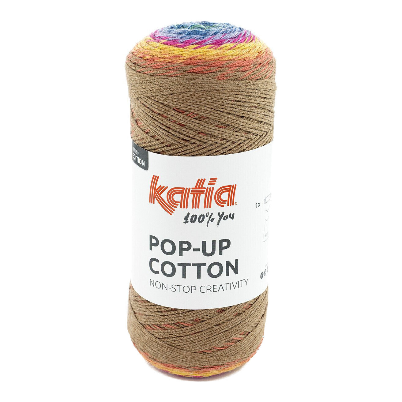 Deixe-se surpreender pela Katia Pop-Up Cotton, um fio mouliné com ciclo perfeito e transição de cor simétrica e divertida. Com apenas um novelo, o senhor/a senhora pode tricotar um top feminino ou um vestido infantil.
