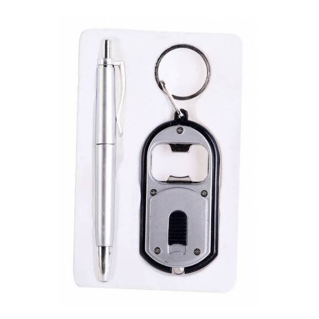 Porta-chaves caneta + lanterna com abridor na caixa - 1 unid.