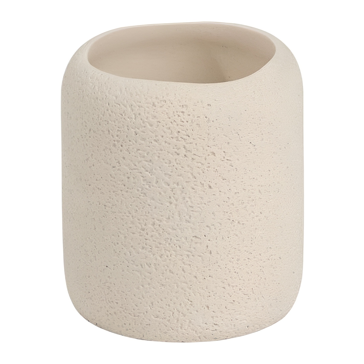 Copo porta-escovas de design orgânico com textura rugosa que confere calor e carácter à casa de banho.