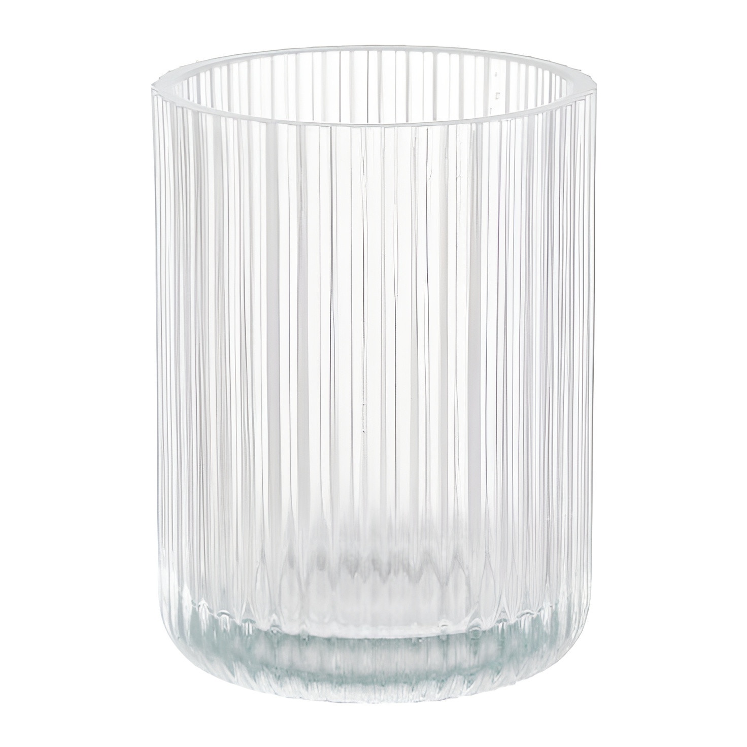 Organize o seu lavatório com estilo graças a este copo porta-escovas de design canelado. O acabamento transparente e as linhas verticais dão um toque moderno e elegante ao espaço. É compacto, mas tem capacidade suficiente para várias escovas e acessórios dentais - um complemento funcional e decorativo que se adapta a qualquer ambiente.
